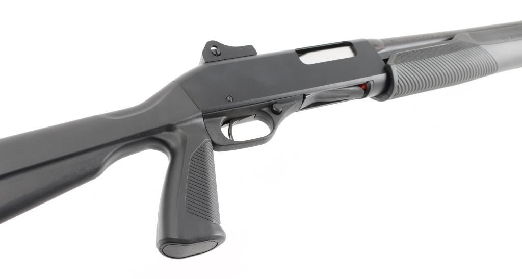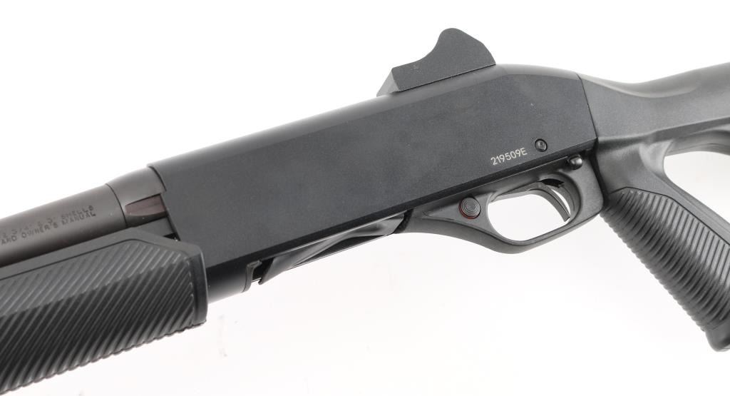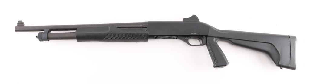 SN:219509E Made in China and imported by Savage Arms Westfield. MA. This is a slide/ pump-action shotgun chambered in 20 Ga. for 2.75" & 3" shells, chrome alloy 18.5" steel barrel with ghost sights (adjustable rear and green fiber optic front), fixed cylinder choke and synthetic pistol grip stock with rubber recoil, 5 round tube magazine. Comes with the original box, owner's manual, ear plugs and lock. Condition is NRA Excellent. Modern Firearm.