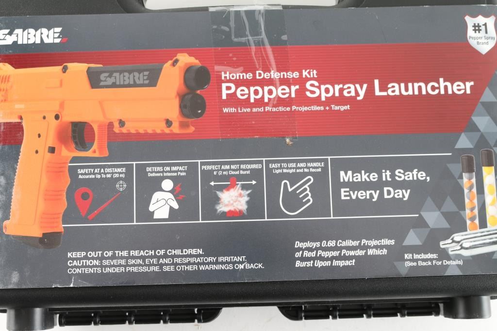 The Launcher SL7 deploys a series of maximum strength red pepper powder projectiles from a safe distance of 66-feet (20-meters). Releasing up to seven projectiles of maximum strength pepper powder saturating the area with a 6-foot (2-meter) pepper cloud. Includes Home Defense Pepper Spray Launcher with 7x Red Pepper Projectiles, Magazine, 14x Inert Practice Projectiles, 2x 12-Gram C02 Cartridges, Lockable Hard Storage Case, Manual and Practice Target.