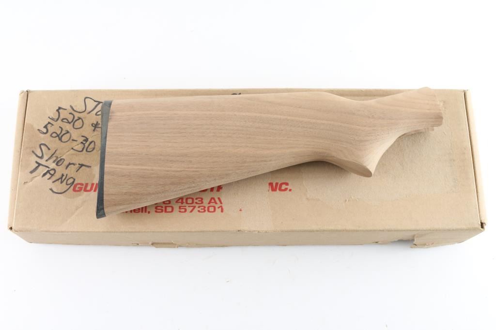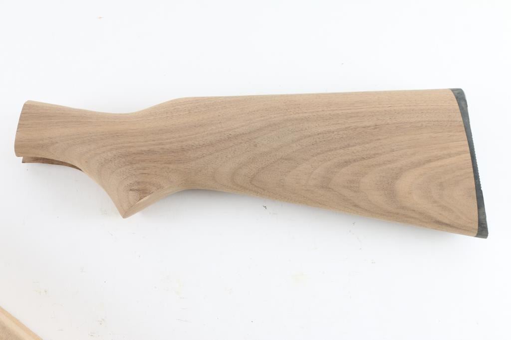 1 ) New walnut buttstock for Stevens 520A. Has black plastic serrated butt pad, no mounting screw and no finish.