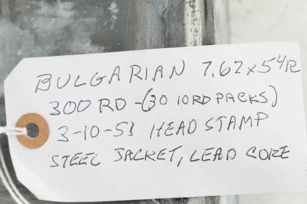 Lot of 7.62 X 54R ammo in sealed can (unopened). 300 rounds of Bulgarian steel jacket, lead core. weighs approx. 16.5 lbs.