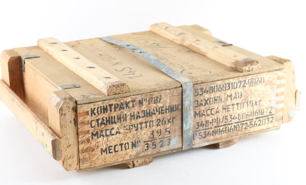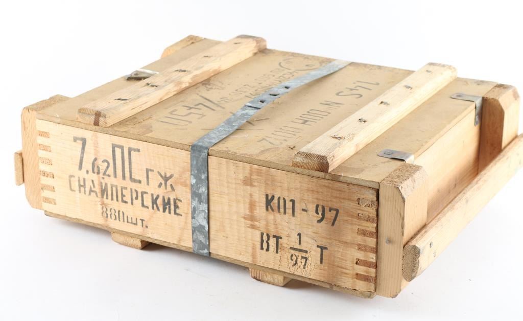 A total of 880 rounds made in Russia, unopened wood crate holding 2 spam cans.