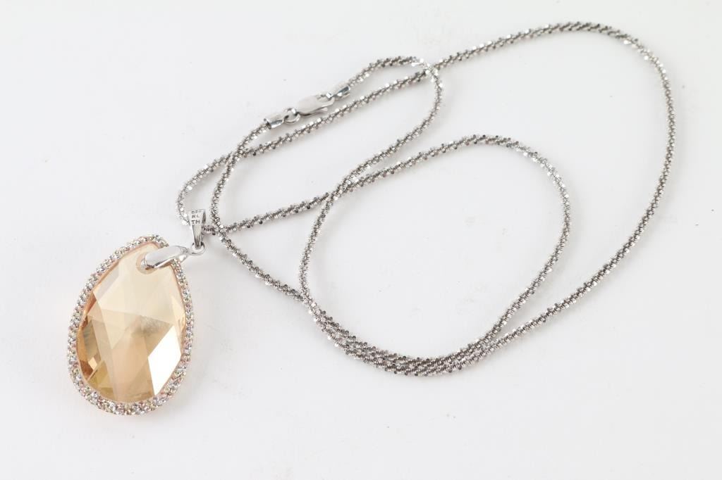 Beautiful Cut Stone, Unknown Type, On Sterling Chain