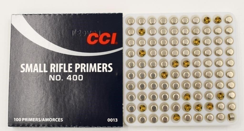 Up Next We Have a Lot of 1000 CCI Small Rifle Primers #400, CCI Primers are continuously tested and improved. As a result today's CCI primers are more sensitive, easier to seat and more compatible with progressive and automated loading equipment than ever before. They utilize modern non-corrosive and non-mercuric initiator mixes for the cleanest burn possible. NO HAZMAT FEES!!!