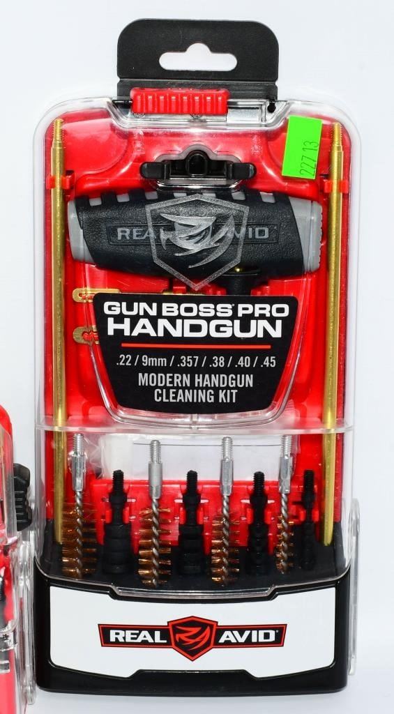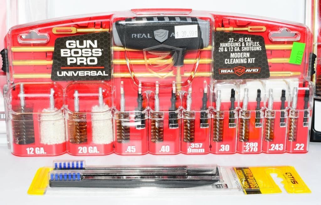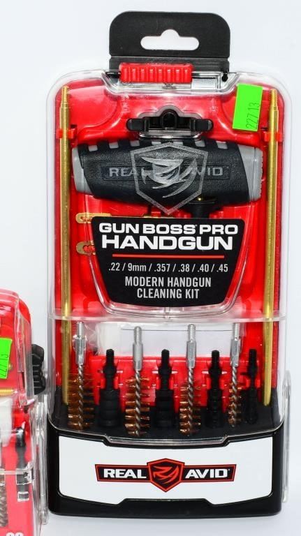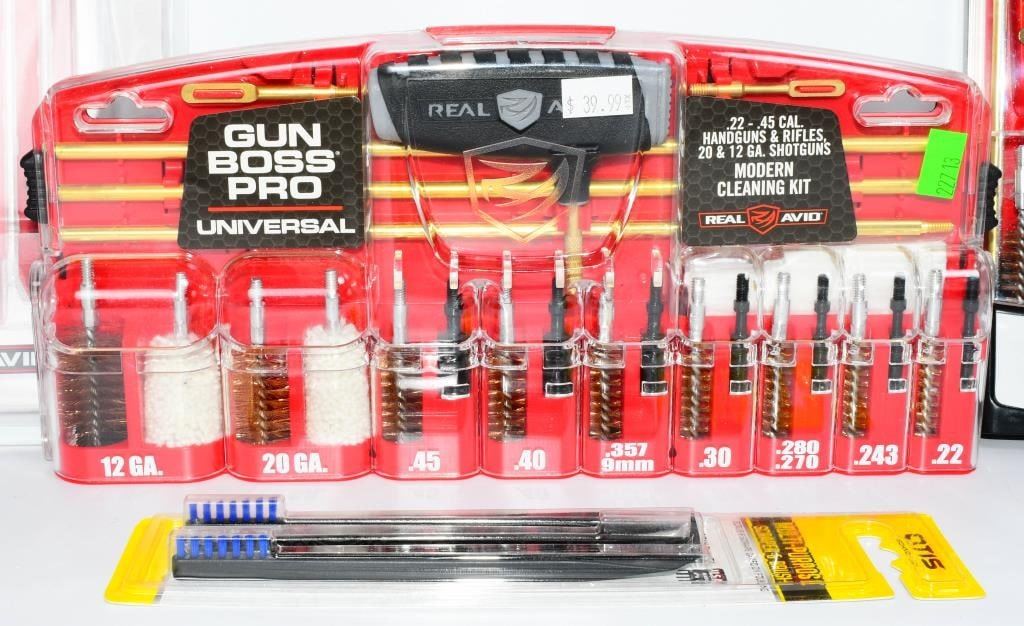 New in the Package Gun Cleaning Kits & Accessories, Includes 1 Otis Multi Purpose Scraper & Brush , 1 Pack Of 8 Super Scrubber Gun Brushes With Integrated Scrapers, 1 Real Avid Gun Boss Pro Handgun Cleaning Kit for Modern Handguns, & 1 Real Avid Gun Boss Pro Modern Gun Cleaning Kit Hello, firearm enthusiasts! Delve into the world of pristine firearms with this comprehensive bundle of New in the Package Gun Cleaning Kits & Accessories. This package includes top-notch items to keep your firearms in impeccable condition. Get ready to bid confidently on this all-inclusive set that ensures your firearms receive the care they deserve. Key Features: Otis Multi-Purpose Scraper & Brush: This package includes the versatile Otis Multi-Purpose Scraper & Brush, a must-have tool for maintaining your firearms. Bid confidently on a tool designed for precision cleaning and maintenance. Super Scrubber Gun Brushes with Integrated Scrapers: Included in the bundle is a pack of 8 Super Scrubber Gun Brushes with Integrated Scrapers. These brushes ensure a thorough cleaning, and the integrated scrapers add an extra layer of precision to your maintenance routine. Real Avid Gun Boss Pro Handgun Cleaning Kit: Elevate your handgun maintenance with the Real Avid Gun Boss Pro Handgun Cleaning Kit. Bid boldly on this kit designed specifically for modern handguns, offering everything you need for a thorough cleaning. Real Avid Gun Boss Pro Modern Gun Cleaning Kit: The package is completed with the Real Avid Gun Boss Pro Modern Gun Cleaning Kit, ensuring that your modern firearms receive the care they deserve. Bid confidently on a comprehensive kit that covers all your cleaning needs. Embark on this bidding adventure for the New in the Package Gun Cleaning Kits & Accessories Bundle. Don't miss the chance to own high-quality gun cleaning tools and accessories. Place your bids now and give your firearms the care they need to shine!