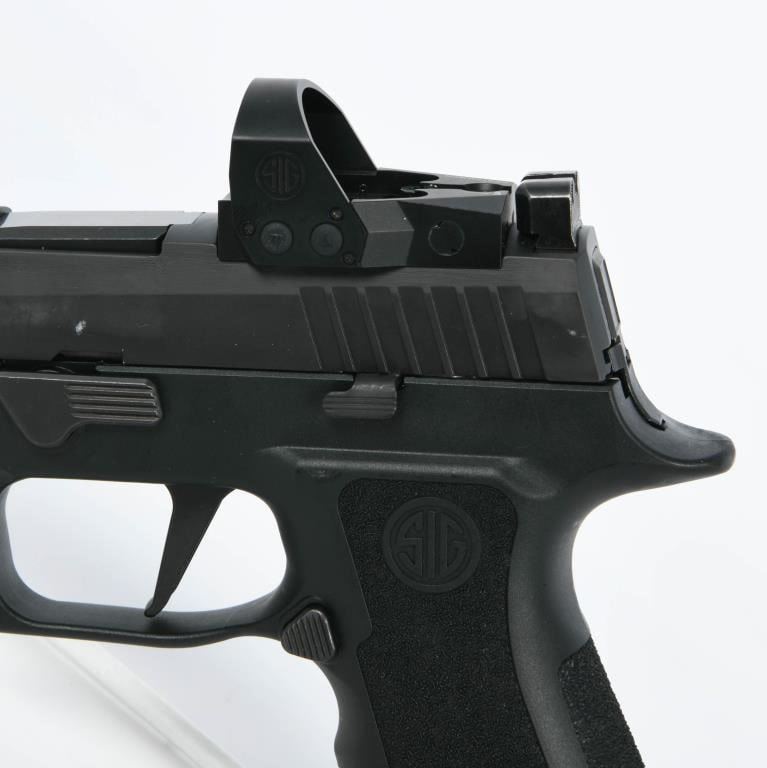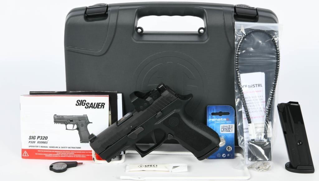 Experience precision and adaptability with the Sig Sauer P320 Semi Auto Pistol chambered in 9mm. This firearm is designed for versatility, featuring an integrated Picatinny rail on the frame. The inclusion of a flat-faced trigger enhances control and trigger response, ensuring a satisfying shooting experience. To elevate your accuracy, this P320 is equipped with a Romeo1 Pro 1X30mm 6 MOA Reflex Red Dot Sight. However, please note that there is an issue with the sight ? it lacks the top cap to secure the battery. Rest assured, this minor setback can likely be addressed by reaching out to Sig Sauer directly for the necessary component. For extended shooting sessions, the pistol comes with two factory magazines, minimizing downtime for reloading and keeping you focused on your target. The package is presented in the factory hard case, accompanied by essential paperwork, ensuring convenient storage and transport. To power the Reflex Red Dot Sight, a brand new battery is included, offering reliability and longevity for your shooting needs. Embrace the innovative design and features of the Sig Sauer P320 for a dynamic shooting experience at the range.