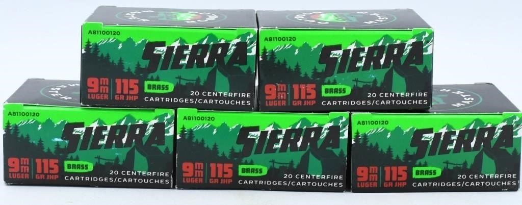Lot 100 100 Rounds Of Sierra 9mm Luger Ammunition
