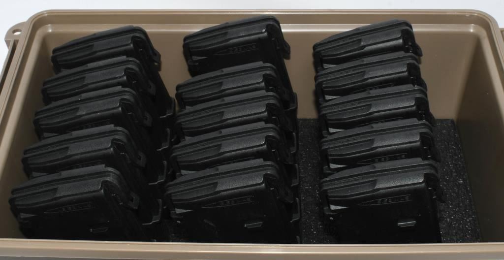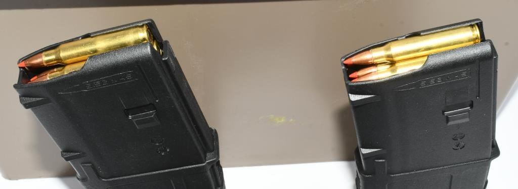 Secure 450 rounds of 5.56/.223 ammunition in a convenient package that includes 15 preloaded 30-round AR/M4 PMAG magazines. This comprehensive set comes with a practical plastic magazine storage container for organized storage and easy transport. The 5.56/.223 ammo is ready for use in your AR/M4 platform firearms, providing a seamless shooting experience. The preloaded magazines allow for quick and efficient reloading during your shooting sessions, enhancing convenience and efficiency. Bid confidently on this comprehensive package, securing 450 rounds of 5.56/.223 ammunition, 15 preloaded 30-round AR/M4 PMAG magazines, and a plastic magazine storage container to elevate your shooting experience. Note: Please ensure compliance with local and state regulations regarding the purchase and possession of ammunition and accessories.