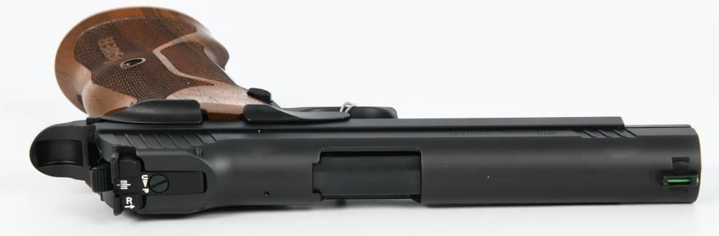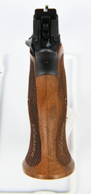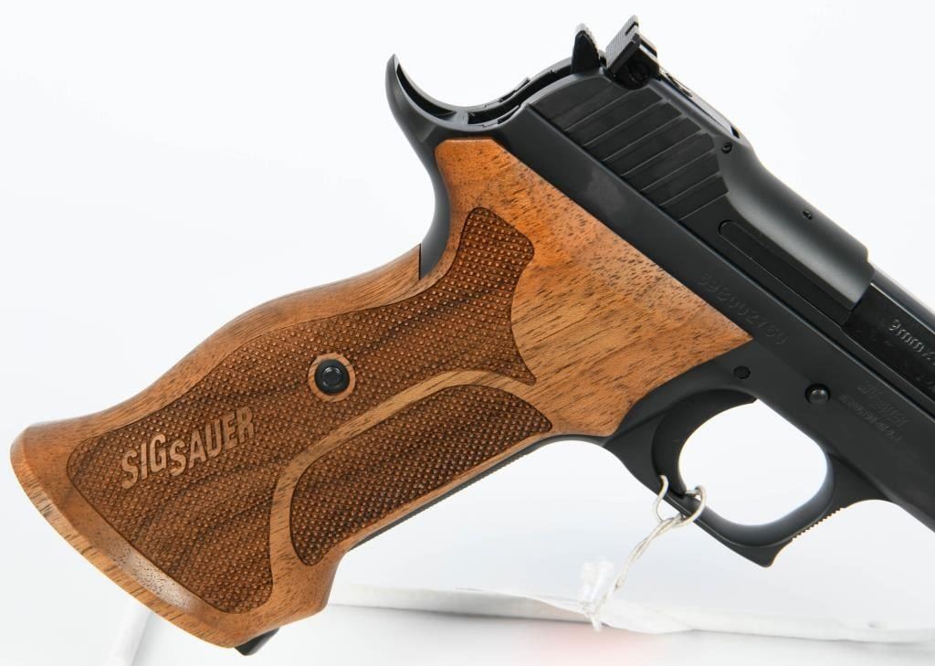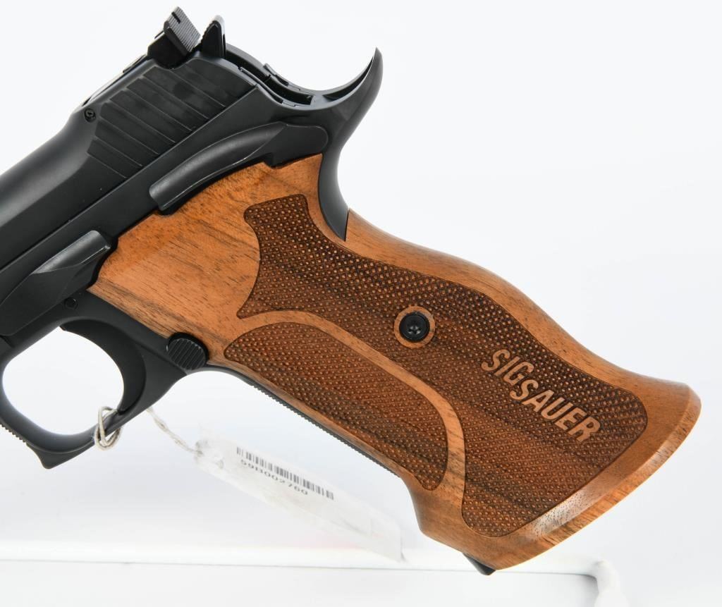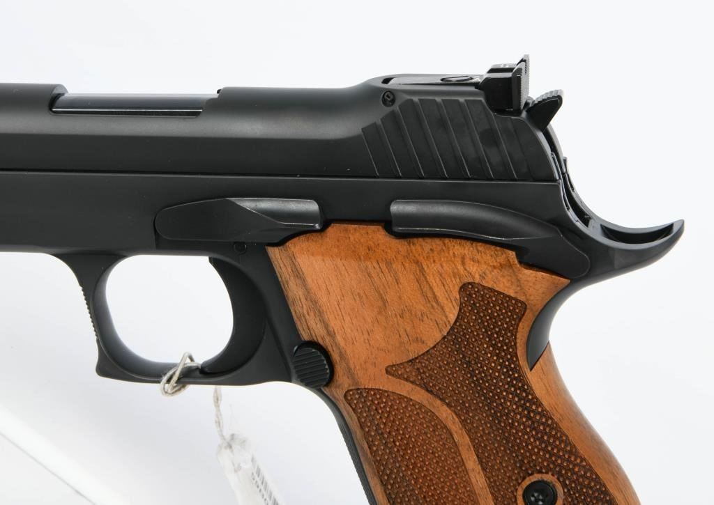 Indulge in the sophistication and rarity of the Sig Sauer P210 Target, a semi-automatic pistol chambered in the refined 9mm caliber and presented in an unfired condition. This exemplar of precision craftsmanship promises an exquisite shooting experience. Admire the elegant checkered wood grips that add a touch of timeless style to this remarkable firearm. The attention to detail in the design of the P210 Target reflects Sig Sauer's commitment to excellence. From the tasteful wood grips to the meticulously crafted components, every aspect of this pistol contributes to its allure. In addition to its aesthetic appeal, the Sig Sauer P210 Target boasts unparalleled performance. The unfired condition ensures that you are the first to experience the flawless action and accuracy of this exceptional pistol. Completing the package, the P210 Target comes with two magazines, providing you with ample rounds to appreciate the smooth shooting and precision engineering that Sig Sauer is renowned for. Safeguarded in the factory hard case with accompanying paperwork, this pistol is not just a firearm; it's a collector's treasure waiting to be cherished.