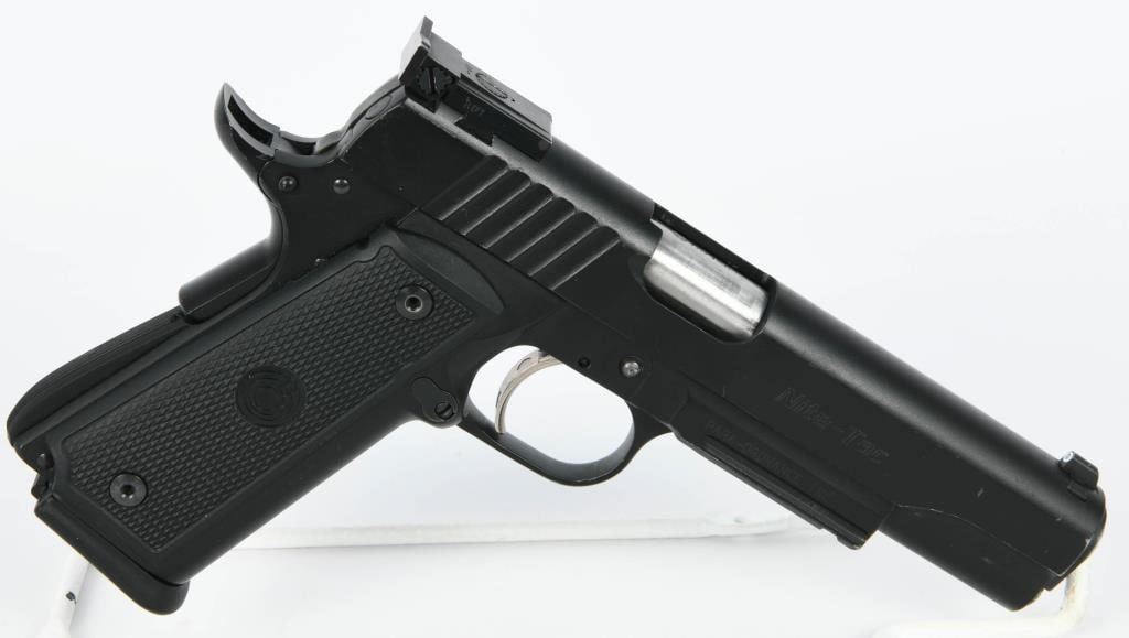 Introducing the Para Ordnance LDA Nite-Tac, a Semi-Automatic pistol chambered in .45 ACP that comes complete with two magazines and its original factory hard case, accompanied by paperwork and a lock. This firearm presents itself in excellent pre-owned condition, attesting to its quality and care. The LDA (Light Double Action) design offers a unique double-action trigger system, providing a smooth and consistent pull. With the versatility of two magazines, this pistol ensures a practical and reliable shooting experience. Enclosed in the factory hard case, accompanied by essential documentation and a lock, the Para Ordnance LDA Nite-Tac stands as a testament to craftsmanship and attention to detail.