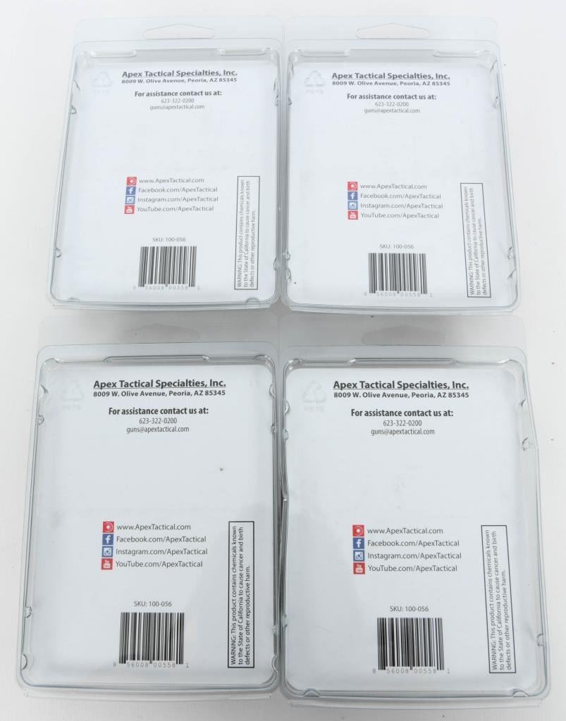 Introducing 4 new Apex M&P Shield Enhancement Triggers Kits?an exceptional upgrade for your Smith & Wesson M&P Shield. Crafted for precision, these enhancement trigger kits from Apex are designed to elevate your shooting experience, providing a crisper and more responsive pull. Seize the opportunity to acquire 4 of these cutting-edge upgrades. Bid now and enhance your M&P Shield with Apex excellence! Happy bidding!