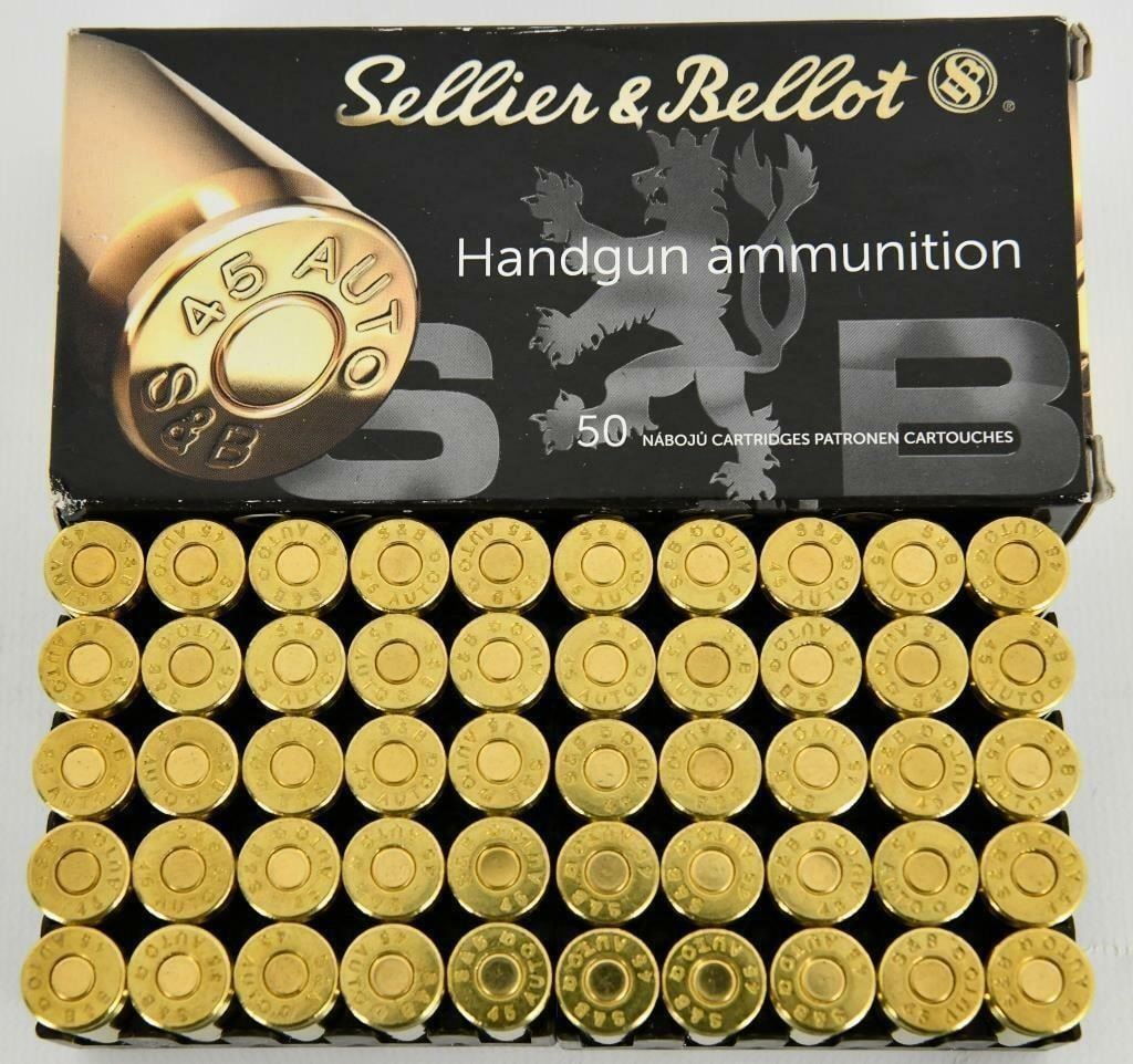 100 Rounds Of Sellier & Bellot .45 ACP Ammunition 230 Grain FMJ 853 fps This Sellier & Bellot .45 ACP ammunition features a full metal jacket projectile for improved reliability and penetration. The 230-grain bullet is capable of traveling at 853 fps, producing 372 ft/lbs of energy at the muzzle. This ammunition is a great choice for target shooting, match use and plinking at the range. When you need dependable ammunition you can count on, you can trust in Sellier & Bellot. Sellier & Bellot is one of the oldest ammunition manufacturers in the world. S&B was established in 1825 by Louis Sellier and Jean Maria Nicolaus Bellot in Prague, producing percussion caps. In 1918, the company began loading 9mm cartridges. Moving to Vlasim, Czechoslovak in 1945 allowed for future growth into additional calibers of ammunition. Sellier & Bellot .45 ACP Ammo Features and Specifications: Caliber: .45 ACP (Automatic Colt Pistol) Bullet Type: Full Metal Jacket (FMJ) Bullet Weight: 230 Grains Rounds: 50 Rounds Per Box Muzzle Velocity:853 fps Muzzle Energy: 372 ft/lbs Bullet Diameter:0.451" Casing: Brass Bullet Ballistic Coefficient: 0.115 Primer Style: Boxer Accurate Positive Functioning No Barrel Leading No Expansion Usage: Target, Match, Range and Plinking
