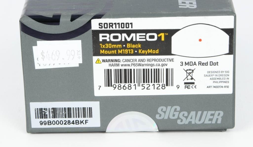 Lot 335 SIG Sauer Romeo1 1x30 Reflex Sight 3 MOA Red Dot