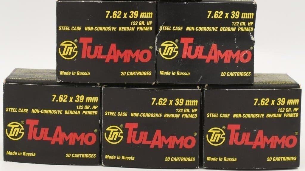 Secure 100 rounds of TulAmmo 7.62x39mm ammunition, featuring steel cases, non-corrosive Berdan primers, and reliable 122-grain Full Metal Jacket (FMJ) projectiles. Manufactured in Russia, TulAmmo is known for producing affordable and dependable ammunition. The steel cases and non-corrosive Berdan primers contribute to cost-effective shooting, while the 122-grain FMJ bullets ensure reliable feeding and consistent performance in your 7.62x39mm firearms. Bid confidently on this opportunity to acquire 100 rounds of TulAmmo 7.62x39mm ammunition, enhancing your shooting sessions with reliable, Russian-made FMJ rounds. Note: Please ensure compliance with local and state regulations regarding the purchase and possession of ammunition.