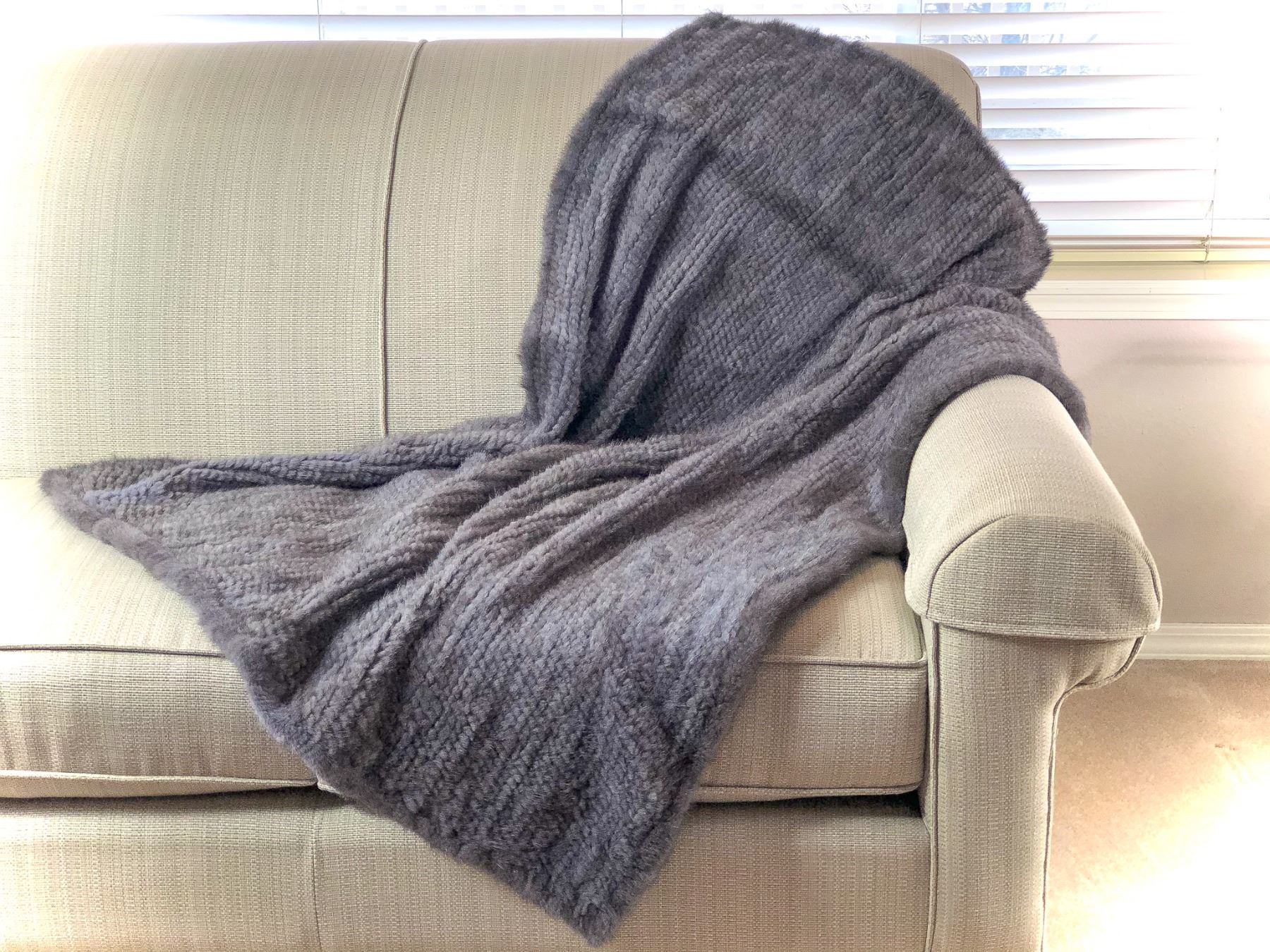 Alaska Fur Gallery - Natural Blue Iris Knitted Mink Blanket