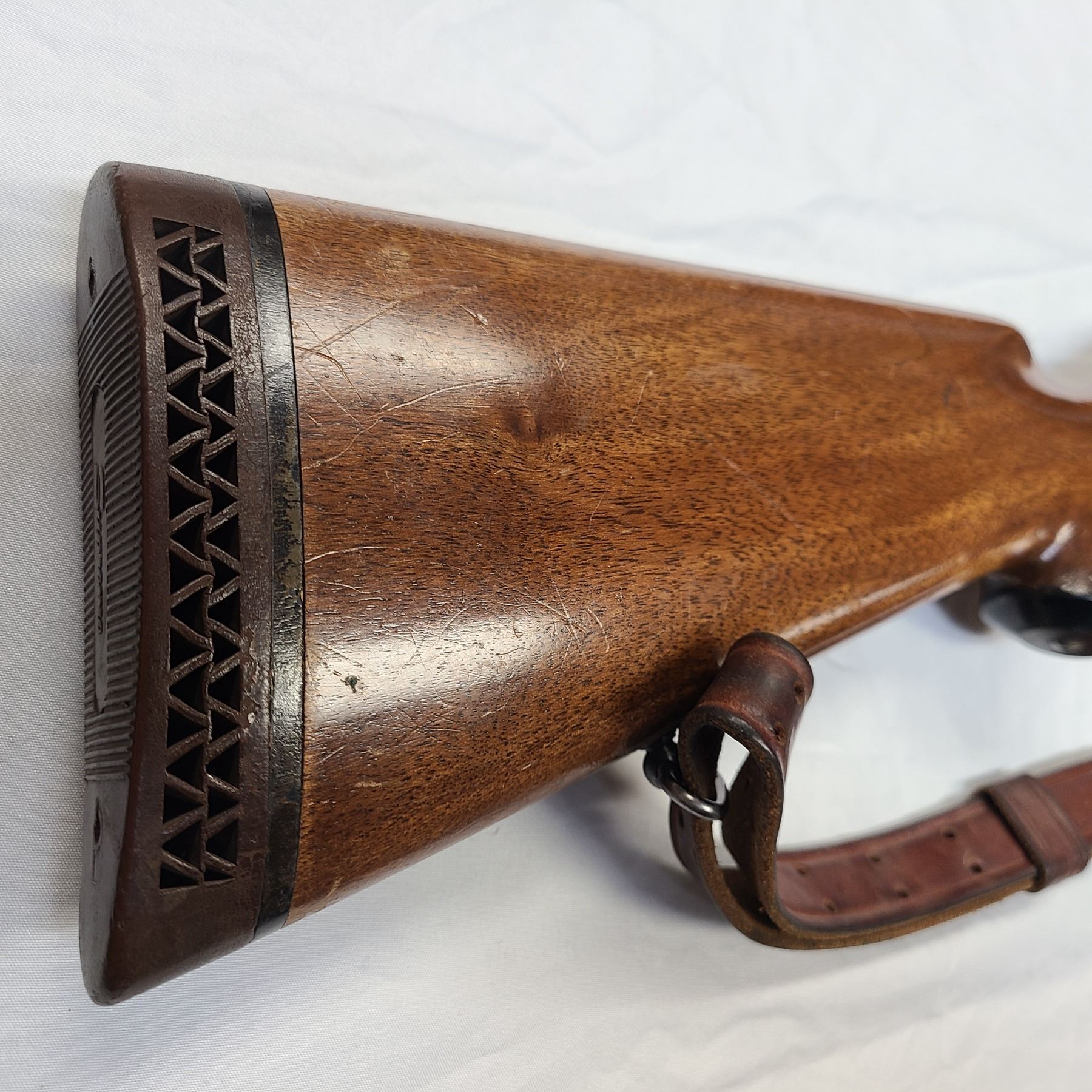Has an older style leather Sling by Hunter Brand.