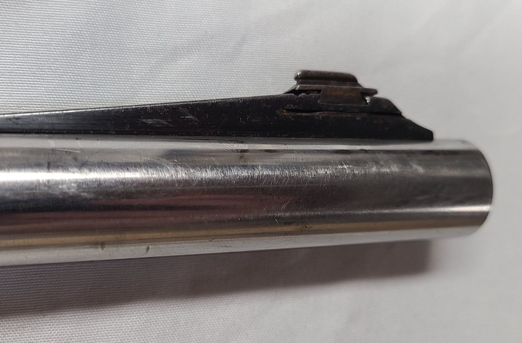 This is an unknown - rebarrelled in a .340 diameter Stainless Steel barrel with no stamping.