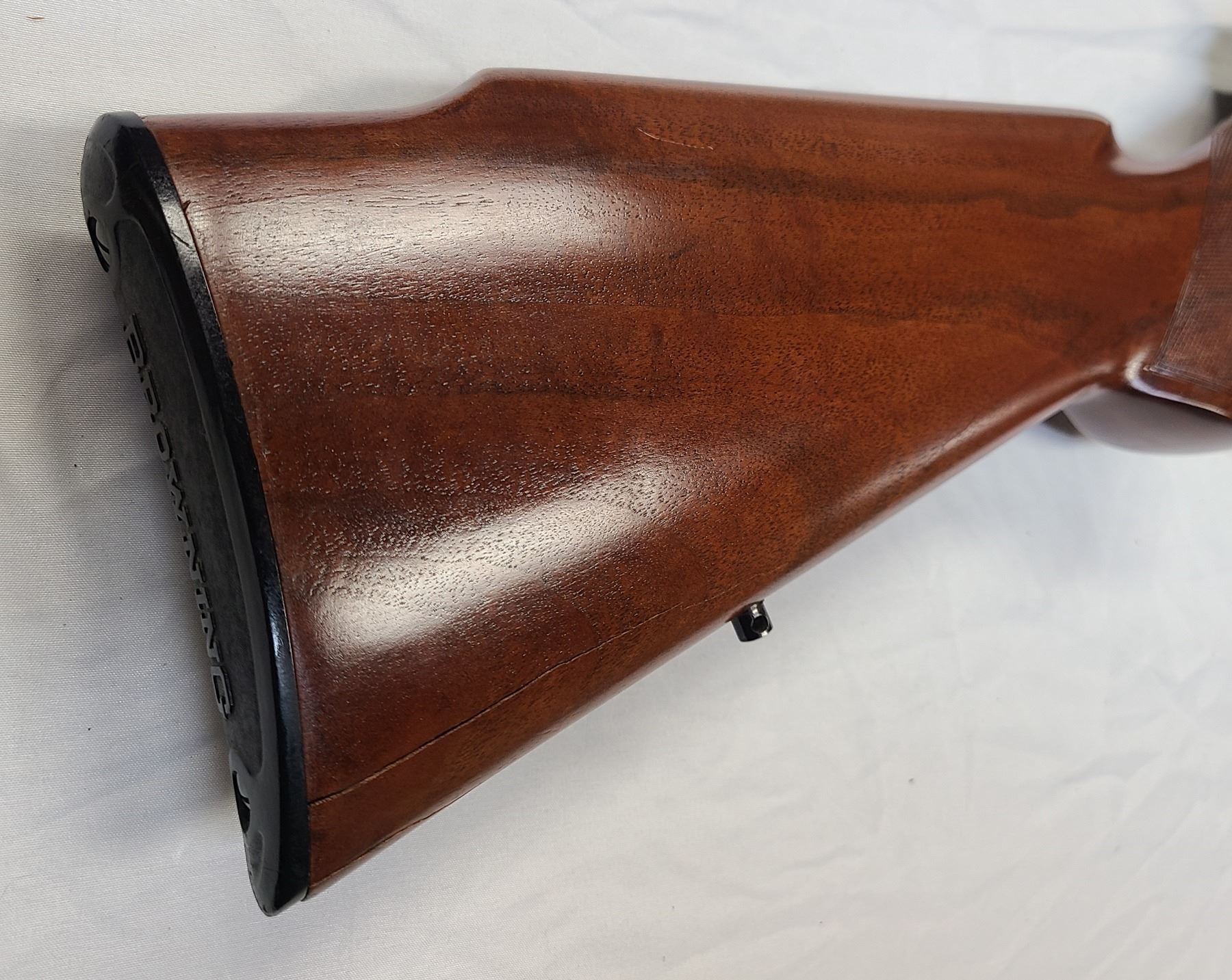 stud and runs to butt pad.- Butt pad is a Browning hard plastic pad