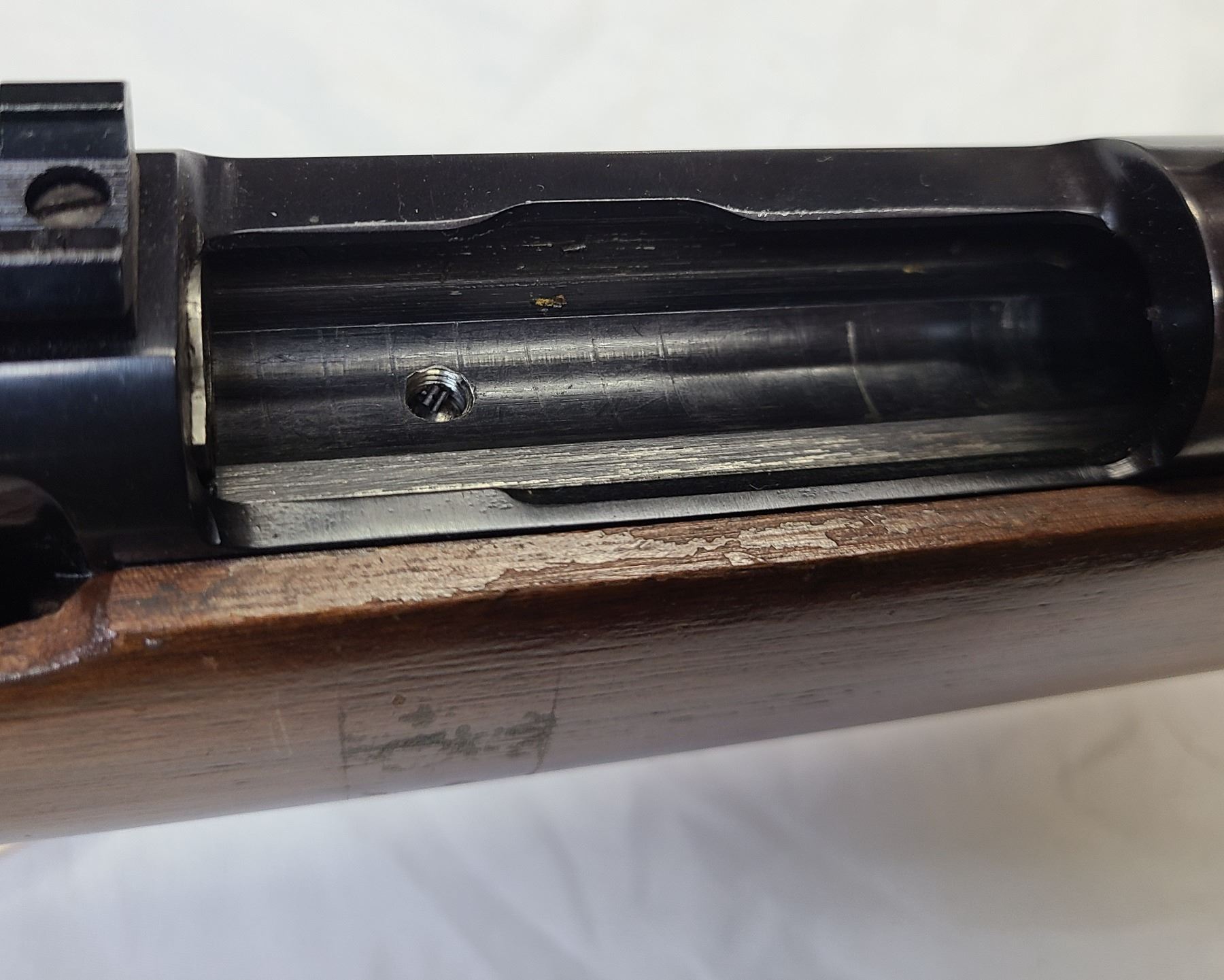 Reveiver is fitted with what looks like a Remington 700 Bolt. Receiver is fitted ontop