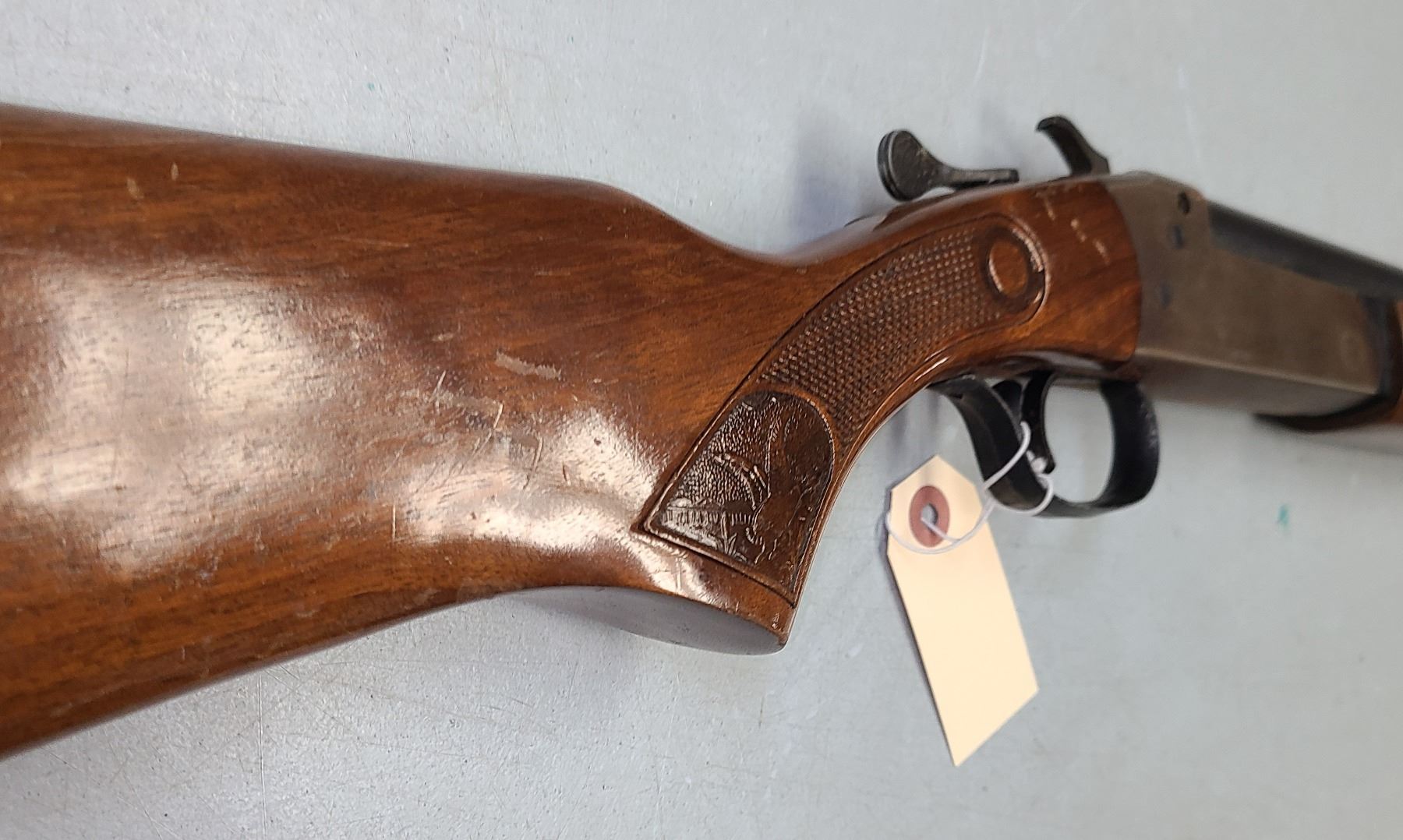 No cracks to wood - finish appears original with black plastic butt plate.