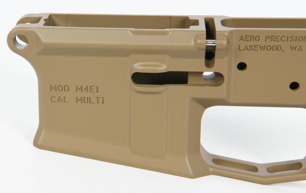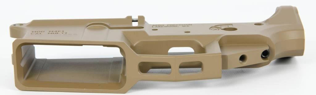 Up Next We Have a Brand New Aero Precision AR-15 M4E1 Stripped Lower Receiver FDE, and Comes in The Factory Box. Aero Precision is a state of the art manufacturer of AR Parts and Accessories Aero Precision is a state of the art manufacturer which crafts superior parts, uppers, and complete rifles. Every component is engineered to razor thin tolerances within Mil-spec standards and is manufactured with the most advanced technologies available. Aero Precision pushes the boundaries of manufacturing with perfect engineering and clean machining by developing and evolving existing processes. When you need perfection and there is no margin of error, you need Aero Precision! Aero Precision M4E1 AR-15 Lower Receiver (Flat Dark Earth) Specifications and Features: Aero Precision APAR600002C Stripped Lower Receiver Multi-Caliber Marked M4 Serial Number Designation Works with Standard AR-15 Components/Magazines Rear takedown pin detent hole is threaded for a 4-40 set screw Integrated Trigger Guard Upper Tension Screw Overall Weight 8.61oz Billet Aesthetics Machined from 7075-T6 Forged Aluminum Cerakote Finish Made in America Flat Dark Earth Includes: Stripped Lower Receiver Nylon Tipped Tensioning Set Screw Threaded Bolt Catch Pin