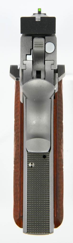 The Springfield Armory 1911-A1 Stainless full-size semi-auto pistol chambered in 9mm is a modern iteration of the classic 1911 design, renowned for its reliability and accuracy. The stainless steel construction enhances durability and resistance to corrosion, making it an excellent choice for various shooting environments. The inclusion of wood grips adds a touch of classic aesthetics to the firearm. Equipped with target rear sights and a front fiber optic sight, this 1911-A1 variant is optimized for precise aiming. The 9mm chambering offers a balance between recoil management and magazine capacity. The pistol appears to be in excellent condition, suggesting it has been well-maintained. With the iconic design and modern features, this Springfield Armory 1911-A1 Stainless in 9mm is likely to provide a satisfying shooting experience, whether for range practice or personal defense. If you have any specific questions or if there's anything else you'd like to know about this firearm, feel free to ask!