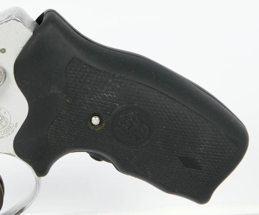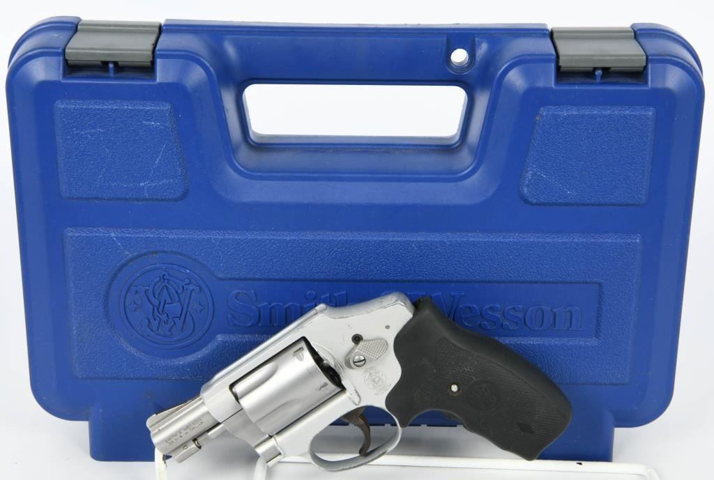 Now available for auction is the Smith & Wesson 642 Airweight Stainless Revolver, chambered in .38 SPL. This revolver offers a reliable, durable, and versatile design, making it a popular choice for concealed carry. It features a 1.88-inch barrel and comes with a Crimson Trace laser grip. The revolver has a concealed hammer and a 5-round capacity. The Smith & Wesson 642 Airweight is known for its simplicity, ease of use, and reliability. The .38 Special chambering provides a balance of stopping power and manageable recoil suitable for concealed carry applications. This specific 642 Airweight is equipped with a Crimson Trace laser grip, enhancing aiming capabilities and providing an additional layer of versatility. The concealed hammer design adds to the revolver's suitability for concealed carry. The revolver appears in good pre-owned condition, suggesting careful maintenance and use. It comes packaged in the factory hard case, ensuring secure storage and transport. Bid with confidence on this Smith & Wesson 642 Airweight, a reliable and compact revolver. As always, ensure compliance with all firearm laws and regulations in your area and bid responsibly to secure this quality firearm for your collection or personal use.