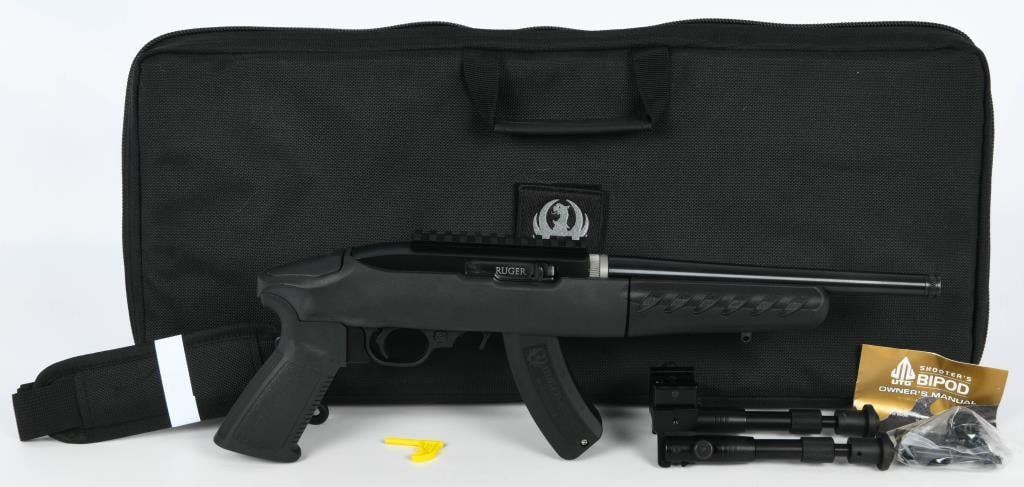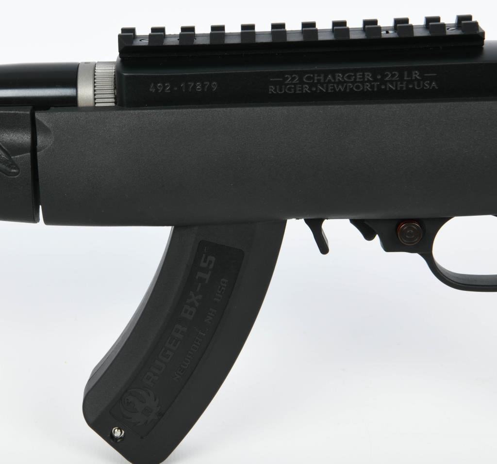 Introducing the Ruger Charger Takedown Pistol, a .22 LR marvel with a 10" threaded barrel, and it's ready to redefine your shooting experience. This exceptional piece of craftsmanship is presented in excellent, like-new condition, housed securely in the factory carry case. The heart of this semi-auto pistol lies in its lightweight polymer frame, ensuring quick and easy handling without compromising durability. The 10" cold-hammer forged barrel comes with standard 1/2x28 threads, allowing you to seamlessly integrate your suppressor or other muzzle devices for a customized shooting experience. Enhanced versatility is at your fingertips with the factory-installed Picatinny rail, facilitating the easy attachment of scopes or red dot sights to elevate your targeting precision. The Charger graciously accepts standard 10/22 BX-15 and BX-10 magazines, ensuring you're well-equipped for extended shooting sessions. This Charger is not just about firepower; it's designed for adaptability. As a takedown version, it effortlessly separates the barrel and forend from the frame, transforming into a compact package for convenient packing and transport. Its swift reassembly in seconds ensures that you're always ready for action. Included in this offering is a factory carry case, a BTX 15 Round Magazine, and a UTG Bipod, adding even more value to an already outstanding package. Whether you're a seasoned enthusiast or a newcomer to the world of firearms, the Ruger Charger Takedown Pistol promises an unparalleled blend of functionality and ease of use. Bid now and make this versatile gem a prized addition to your collection.