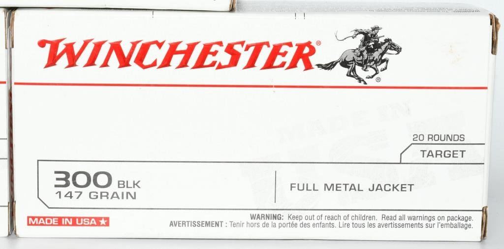Secure 100 rounds of Winchester .300 Blackout ammunition, featuring a robust 147-grain full metal jacket for reliable and accurate performance. Manufactured in the USA, Winchester is a respected name in the firearms industry, known for producing high-quality and consistent ammunition. The 147-grain full metal jacket construction ensures smooth feeding and reliable cycling in your .300 Blackout firearms. These rounds are well-suited for various shooting applications, providing the performance and precision you can expect from Winchester. Bid confidently on this opportunity to acquire 100 rounds of Winchester .300 Blackout ammunition, enhancing your shooting experience with high-quality, made in the USA, full metal jacket rounds. Note: Please ensure compliance with local and state regulations regarding the purchase and possession of ammunition.