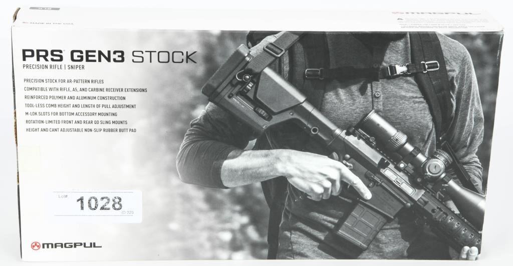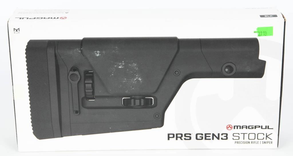 Greetings, Bidders! Upgrade your shooting experience with the Magpul PRS Gen3 AR15/AR10 Rifle Stock. Bid confidently on this new-in-box rifle stock to enhance your firearm's performance and achieve unparalleled precision. Magpul Industries PRS GEN3 Precision-Adjustable Stock for AR15/M16 and AR10/SR25 platforms The Magpul Industries PRS GEN3 Adjustable Stock works with AR15/M16 and AR10/SR25 platforms and provides a stable interface for your rifle. These versatile AR15 Stocks from Magpul Industries have easily adjustable length of pull and cheek piece height to fit a variety of body types and shooting styles. The Magpul Industries PRS GEN3 Precision-Adjustable Stock installs easily and has excellent fit and finish. For a semi-automatic sniper or varminting rifle, install the Magpul Industries PRS GEN3 Precision-Adjustable Stock for AR-15/AR-10. Specifications for Magpul Industries PRS GEN3 Precision-Adjustable Stock for AR15/M16 and AR10/SR25 platforms: Fabric/Material: Aluminum, Steel Gun Model: AR-10, AR-15 Length: 11.5 - 12.9 in Weight: 31.7 oz Finish: MIL-A-8625F Type III, Class 2 Hard Anodized Features of Magpul Industries PRS GEN3 Precision-Adjustable AR-15/AR-10 Rifle Stock, Black