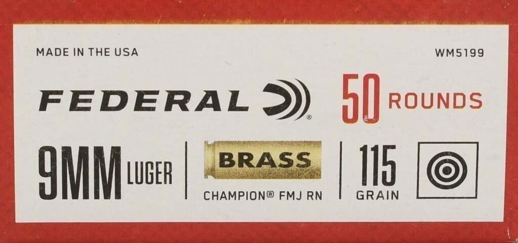 Secure 100 rounds of Federal Champion 9mm Luger ammunition, a trusted choice designed to meet the needs of sport shooters. Crafted with high-quality components, Federal Champion ammo consistently earns praise for its performance and customer satisfaction. The 115-grain Full Metal Jacket (FMJ) projectiles offer reliability and precision, making them ideal for target shooting and plinking purposes. These brass-cased rounds are reloadable, allowing you to make the most of your ammunition investment. With a muzzle velocity of 1180 feet per second and a muzzle energy of 356 ft/lbs, Federal Champion 9mm Luger ammo delivers a balance of speed and power, ensuring a satisfying shooting experience. Whether you're practicing at the range or enjoying a day of shooting with friends and family, this high-quality and economical ammunition is perfect for extended sessions. Bid confidently on this opportunity to enhance your shooting experience with Federal Champion 9mm Luger ammo. Note: Please ensure compliance with local and state regulations regarding the purchase and possession of ammunition.