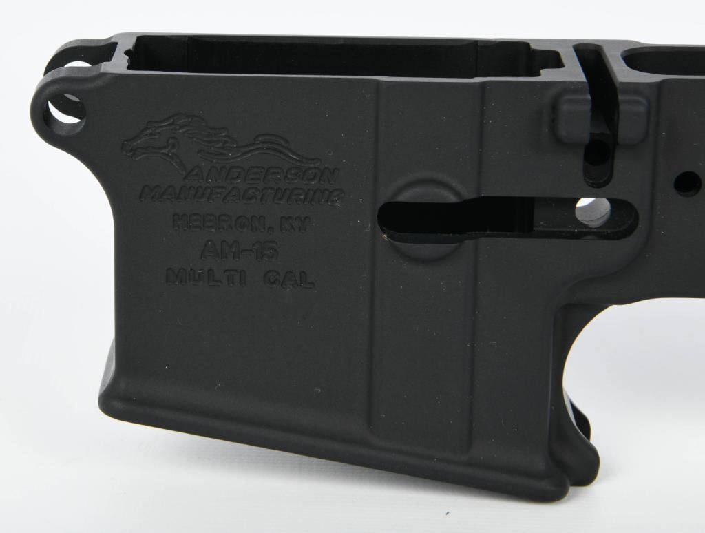 Up Next We Have a Brand New Anderson AM-15 Stripped Lower Receiver, Marked Multi Caliber, forged lower Receivers are CNC machined from a high-strength, 7075 T6 aluminum forging for reliable performance and outstanding durability. Machined to Military Specifications standards and marked "MULTI-CAL" to be used with multiple calibers on the AR-15 platform. This Lower Receiver comes in type III black hard anodizing with an open trigger.