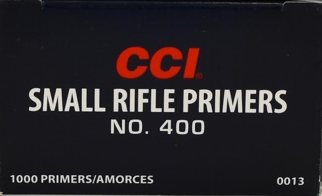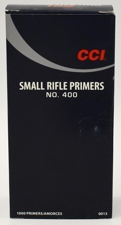 Up Next We Have a Lot of 1000 CCI Small Rifle Primers #400, CCI Primers are continuously tested and improved. As a result today's CCI primers are more sensitive, easier to seat and more compatible with progressive and automated loading equipment than ever before. They utilize modern non-corrosive and non-mercuric initiator mixes for the cleanest burn possible. NO HAZMAT FEES!!!
