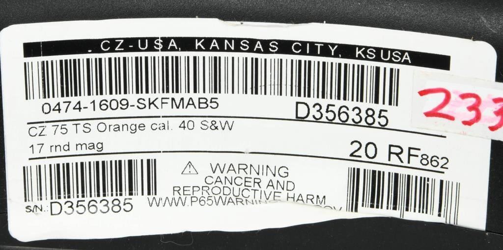 Lot 1104 NEW CZ 75 Tactical Sport Orange .40 S&W Semi Auto