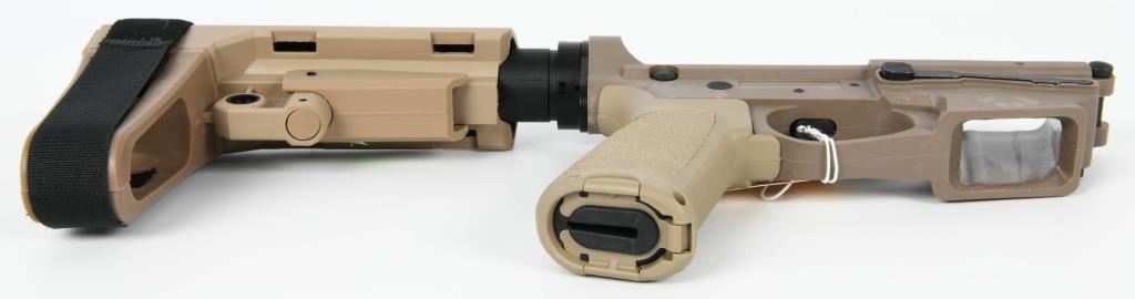Now available for auction is the Tennessee Arms Complete Lower in Flat Dark Earth (FDE), specially chambered for 9MM. This comprehensive package includes a BCM Pistol grip for enhanced handling and comfort, paired with a six-position STI Stock for adjustable customization to suit your preferences. The Tennessee Arms Complete Lower is crafted to meet high standards, combining precision and durability. The FDE finish not only adds a distinctive aesthetic but also provides enhanced resilience to the lower receiver. The 9MM chambering ensures compatibility with a versatile range of ammunition. Complementing this lower is the BCM Pistol grip, known for its ergonomic design and reliability. It contributes to improved handling and control, making it an excellent addition to this lower receiver. The six-position STI Stock adds versatility to the setup, allowing you to adjust the length of pull to accommodate different shooting scenarios or personal preferences. This feature ensures adaptability for various users and situations. Bidders should be aware that, as this is a serialized lower receiver, the transaction will require compliance with background check procedures in accordance with legal requirements. Bid confidently on this Tennessee Arms Complete Lower in FDE, chambered for 9MM, and enhanced with a BCM Pistol grip and six-position STI Stock. This package offers a combination of aesthetics, functionality, and versatility for firearm enthusiasts. Please ensure awareness of firearm laws and regulations in your area, and bid responsibly to secure this well-crafted lower receiver for yourself.