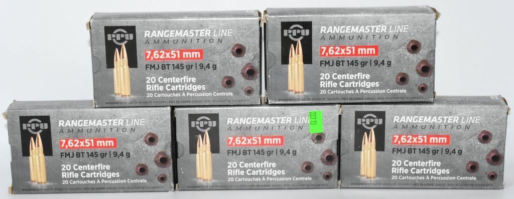 Lot 1120 100 Rounds Of PPU 7.62x51 (.308) Ammunition