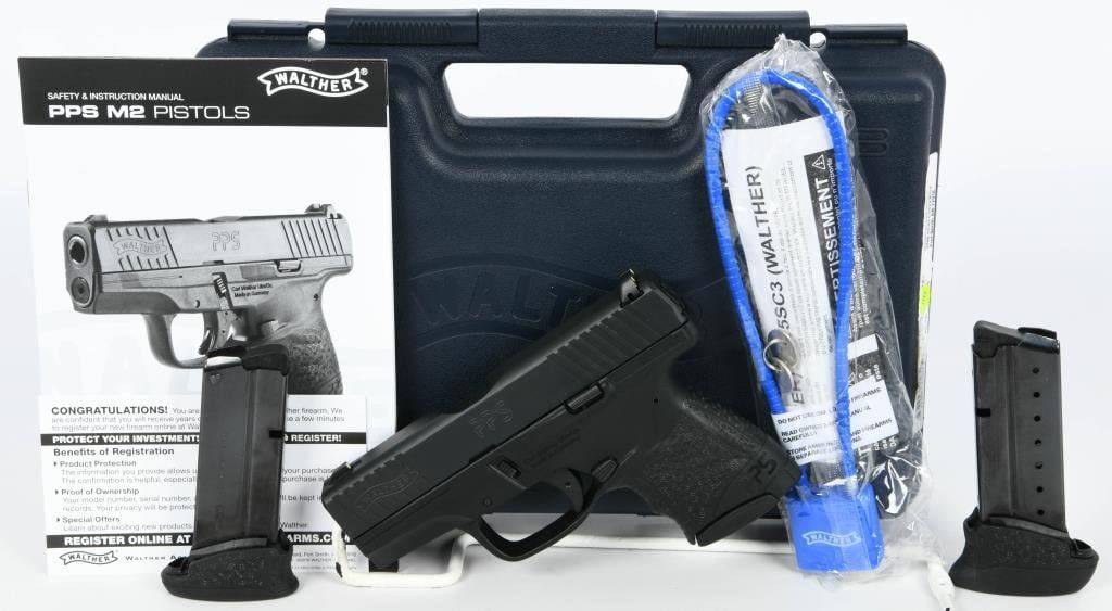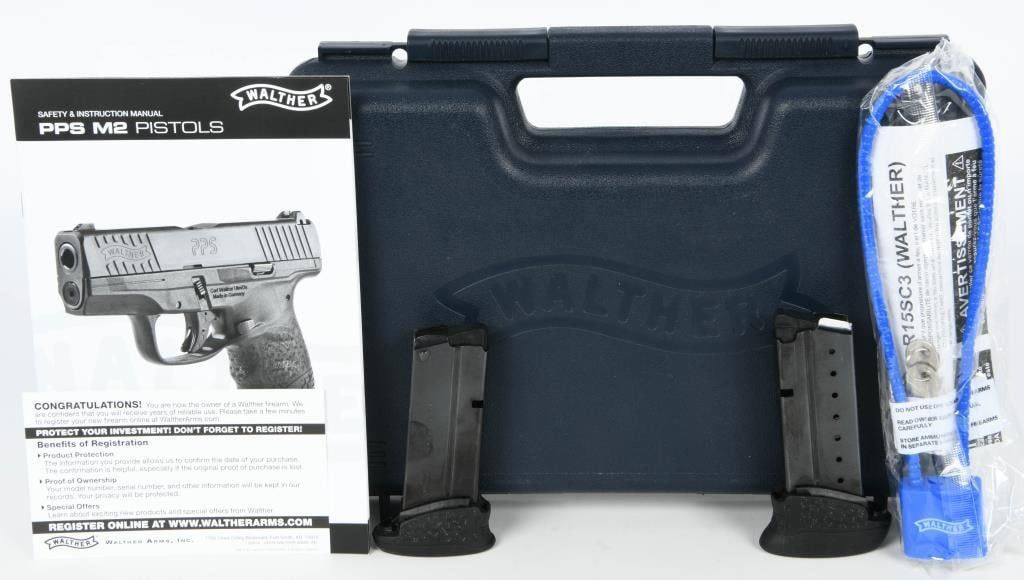The Walther PPS M2 LE SA/DA 9mm 3.2" Semi Auto Handgun is a state-of-the-art firearm designed for concealed carry, combining compact dimensions with the power and versatility required for personal defense. This pistol is presented to you brand new, housed in the factory hard case, and includes a comprehensive package with three magazines, a lock, and paperwork. Key features of the PPS M2 include its thin polymer frame, contributing to a slim profile that aids in comfortable and discreet concealed carry. The pistol employs a striker-fired action, enhancing reliability and responsiveness. Notable safety features include a flat slide stop lever, an internal striker and trigger safety, and a button-style magazine release for intuitive operation. The slide of the PPS M2 is designed for practical use, featuring front and rear serrations for easy manipulation. The corrosion-resistant tenifer coating ensures durability and longevity, even in challenging conditions. Additionally, the slide incorporates a loaded chamber viewport, allowing users to quickly assess the firearm's status. This LE edition model boasts a 3.18" barrel with polygonal rifling, contributing to improved accuracy and bullet performance. The inclusion of 3-dot night sights enhances low-light visibility, providing a clear sight picture in various lighting conditions. The package includes three magazines, offering versatility with options for 6, 7, and 8-round capacities to suit different carry preferences. Overall, the Walther PPS M2 LE stands out as a reliable and feature-rich handgun, making it an excellent choice for individuals prioritizing concealed carry and personal defense. Its thoughtful design, advanced features, and the comprehensive package make it a standout option for those seeking a high-quality and capable firearm.