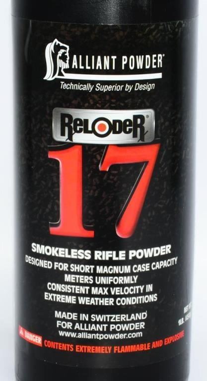 1 LB Of Alliant Powder Reloder 17 Rifle Gun Powder With Reloader 17, reloaders have a powder that meters easy and consistently while providing maximum velocity even in extreme weather. This consistent performance is what reloaders have come to expect from Alliant Powder - and Reloder 17 proves worthy. Grain shape is extruded (stick)