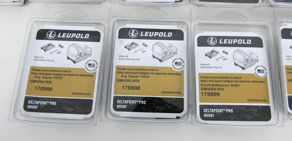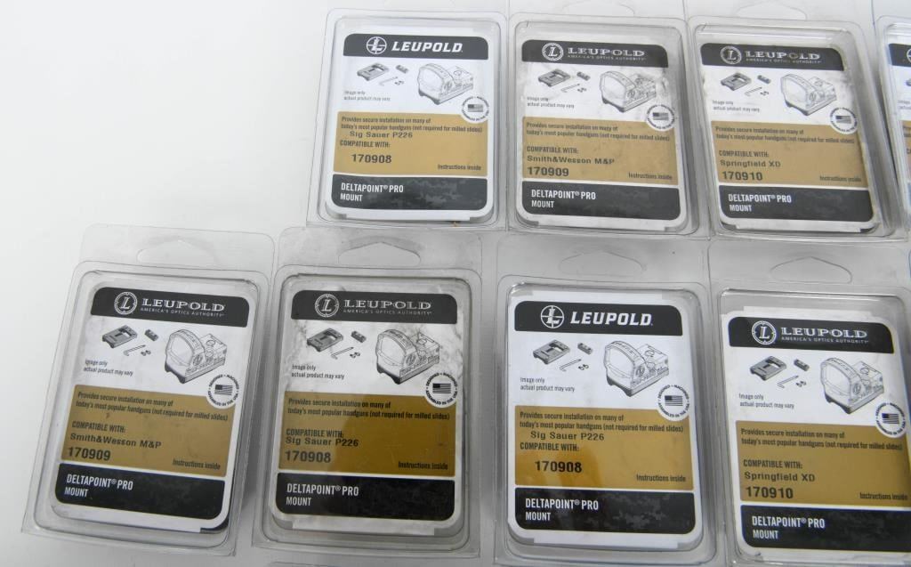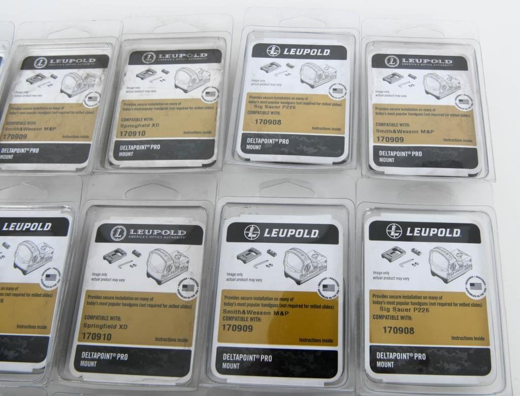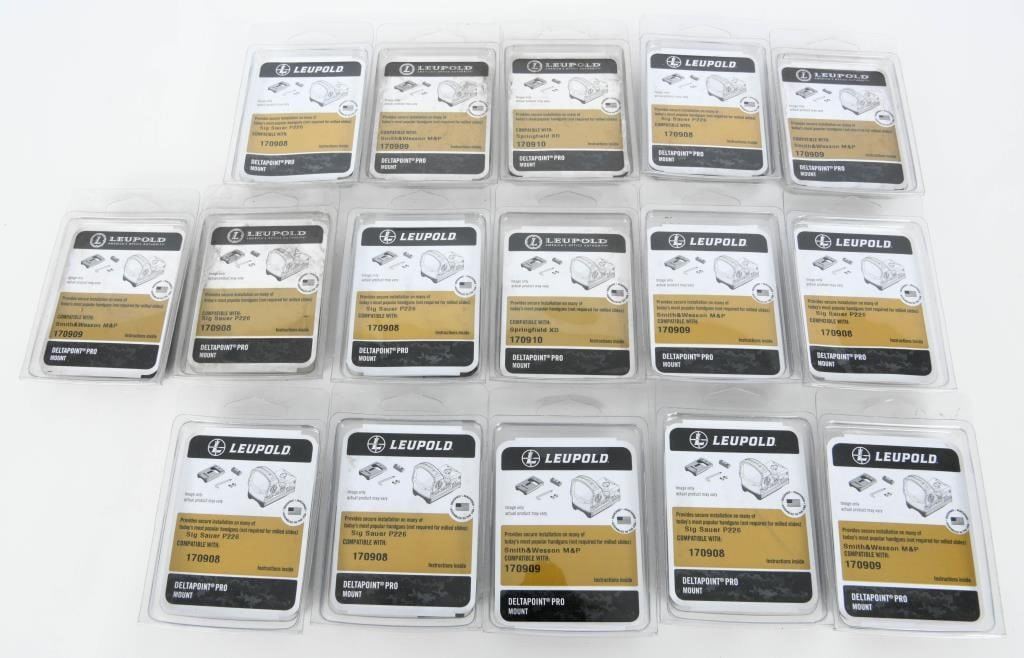 Optics Enthusiasts, get ready for an exceptional opportunity! We present 15 new-in-the-package Leupold Red Dot Pro Mounts. This versatile collection includes mounts for Smith & Wesson M&P, Springfield XD, and Sig Sauer P226. Seize this chance to upgrade your optics setup with top-notch Leupold Red Dot Pro Mounts. Bid now and enhance your shooting experience with the precision and quality of these mounts! Happy bidding!