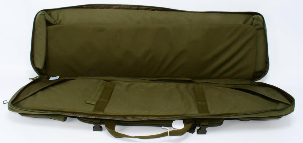 Hello, gear enthusiasts! Presenting the Tactical Savior: Green Soft Padded Rifle Case, appearing in like-new condition. This green-colored case, measuring approximately 42 inches long, features side pouches for extra storage, enhancing its functionality. Embark on this bidding adventure for Tactical Savior: Green Soft Padded Rifle Case. Bid with confidence and secure this case that assures to safeguard your rifle in style. Place your bids now and elevate your rifle transportation with this like-new, green tactical savior!
