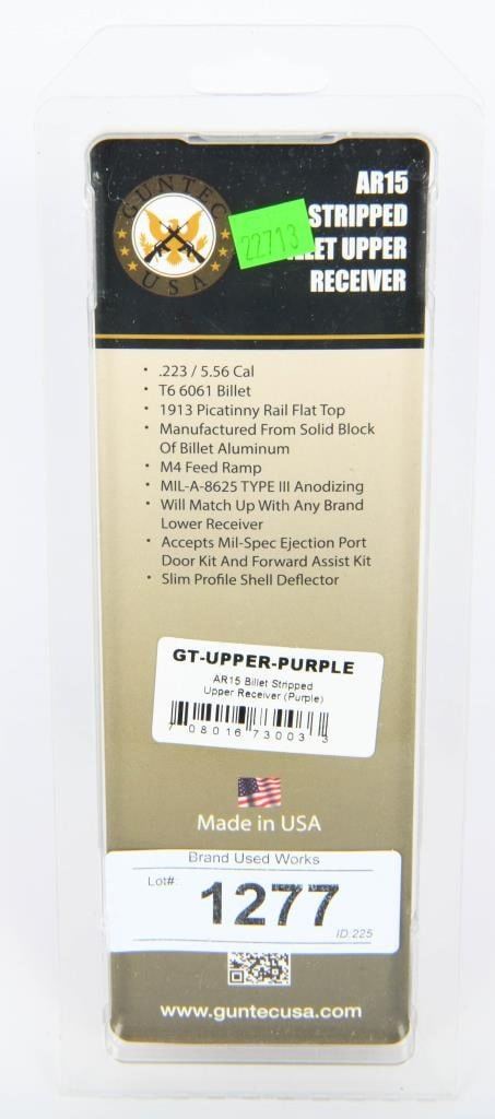 Lot 1277 NIP AR-15 Stripped Billet Upper Receiver (Purple)