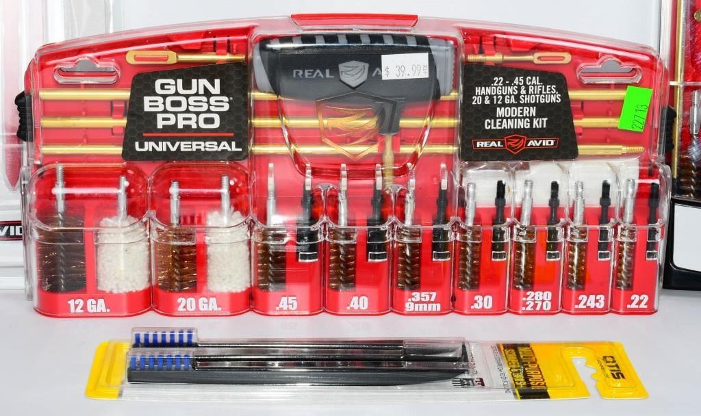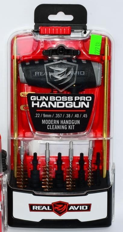 New in the Package Gun Cleaning Kits & Accessories, Includes 1 Otis Multi Purpose Scraper & Brush , 1 Pack Of 8 Super Scrubber Gun Brushes With Integrated Scrapers, 1 Real Avid Gun Boss Pro Handgun Cleaning Kit for Modern Handguns, & 1 Real Avid Gun Boss Pro Modern Gun Cleaning Kit Hello, firearm enthusiasts! Delve into the world of pristine firearms with this comprehensive bundle of New in the Package Gun Cleaning Kits & Accessories. This package includes top-notch items to keep your firearms in impeccable condition. Get ready to bid confidently on this all-inclusive set that ensures your firearms receive the care they deserve. Key Features: Otis Multi-Purpose Scraper & Brush: This package includes the versatile Otis Multi-Purpose Scraper & Brush, a must-have tool for maintaining your firearms. Bid confidently on a tool designed for precision cleaning and maintenance. Super Scrubber Gun Brushes with Integrated Scrapers: Included in the bundle is a pack of 8 Super Scrubber Gun Brushes with Integrated Scrapers. These brushes ensure a thorough cleaning, and the integrated scrapers add an extra layer of precision to your maintenance routine. Real Avid Gun Boss Pro Handgun Cleaning Kit: Elevate your handgun maintenance with the Real Avid Gun Boss Pro Handgun Cleaning Kit. Bid boldly on this kit designed specifically for modern handguns, offering everything you need for a thorough cleaning. Real Avid Gun Boss Pro Modern Gun Cleaning Kit: The package is completed with the Real Avid Gun Boss Pro Modern Gun Cleaning Kit, ensuring that your modern firearms receive the care they deserve. Bid confidently on a comprehensive kit that covers all your cleaning needs. Embark on this bidding adventure for the New in the Package Gun Cleaning Kits & Accessories Bundle. Don't miss the chance to own high-quality gun cleaning tools and accessories. Place your bids now and give your firearms the care they need to shine!