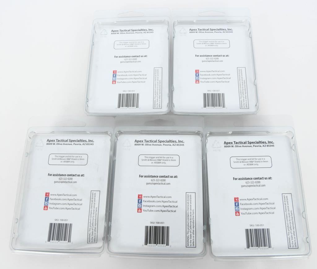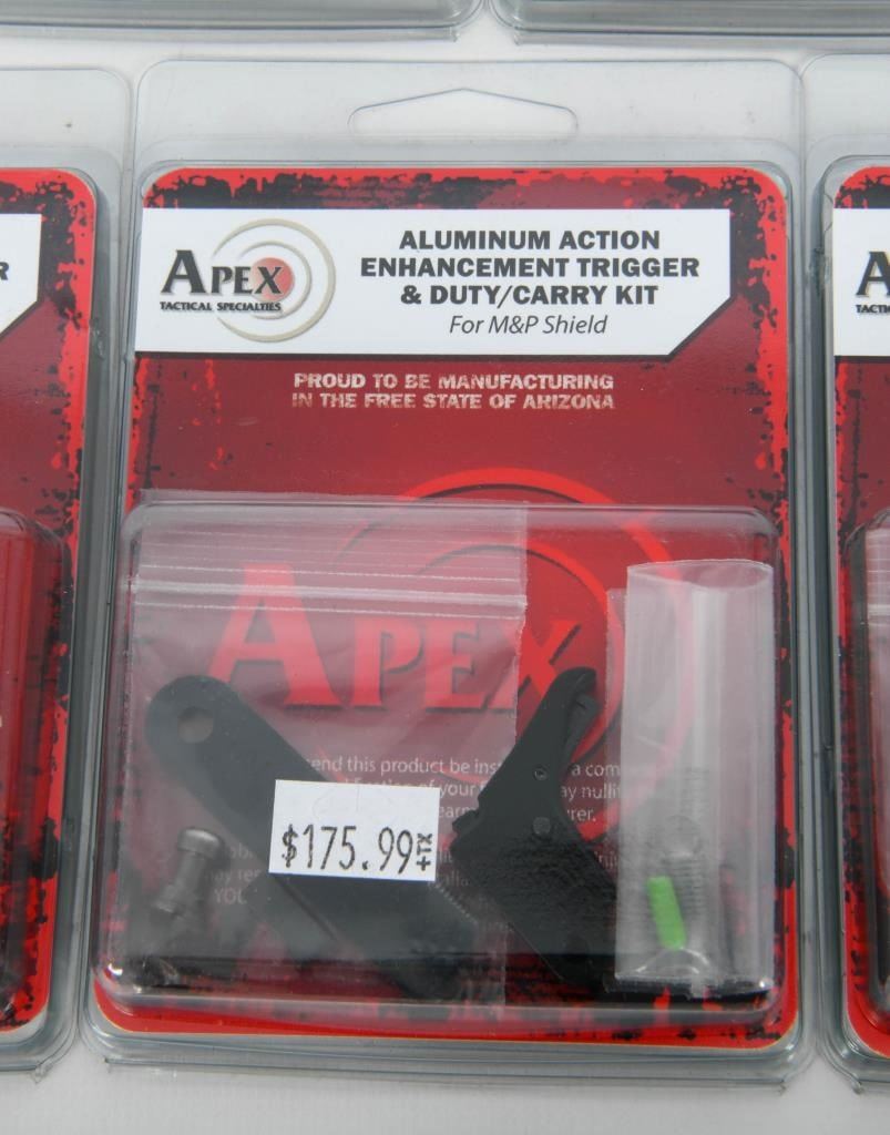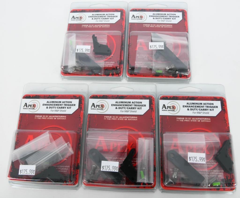 Kits; Prepare for an extraordinary opportunity as we unveil six Apex Tactical Action Enhancement Trigger & Carry Kits?an exclusive chance to enhance your firearm experience. Experience precision with the Apex Tactical Action Enhancement Trigger, delivering a crisper, more responsive pull for heightened control and accuracy. Discover reliability in the Carry Kit, meticulously crafted to optimize critical components, ensuring a consistent trigger pull in various scenarios. Seize this unique opportunity to secure six sets of these cutting-edge enhancements. Bid now and elevate your Smith & Wesson M&P Shield to new heights of excellence! Happy bidding!