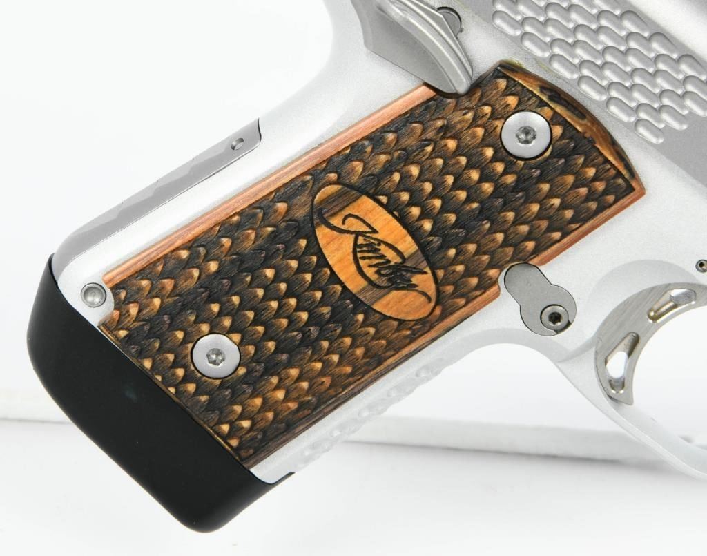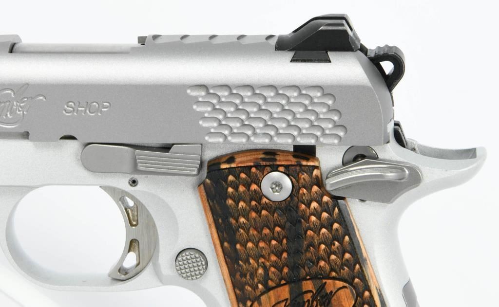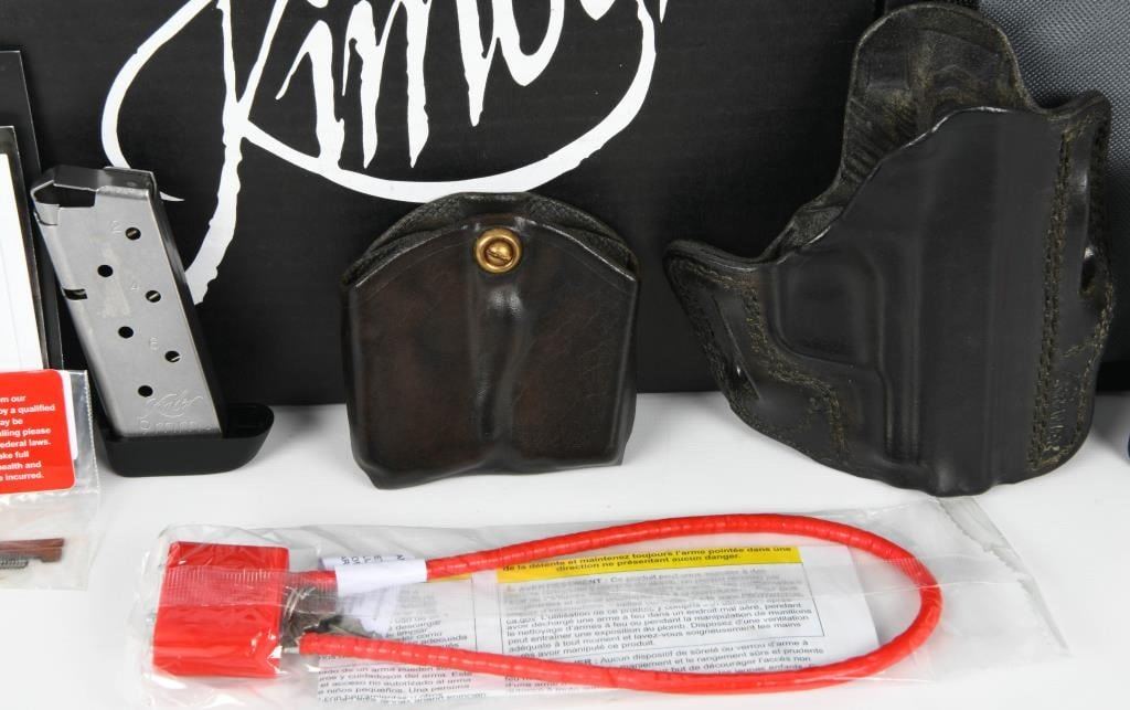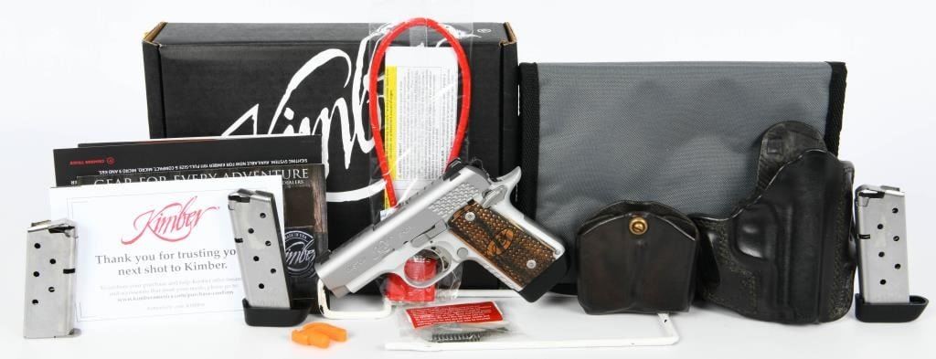 Introducing the brand new and unfired Kimber Micro 9 Stainless Raptor, a 9mm Luger Semi-Auto Pistol that combines compact design with reliability, perfect for everyday and concealed carry. This custom-enhanced pistol features a 3.1-inch barrel, night sights, and a custom trigger job, providing an optimal shooting experience. The original stock parts are included, ensuring flexibility for individual preferences. This Kimber Micro 9 has been meticulously crafted with attention to detail, boasting a miniature 1911 design. The single-action trigger offers a short, smooth pull, contributing to accuracy and building confidence in every shot. The thumb safety, slide release, and magazine release are reminiscent of the classic 1911 features, providing familiarity and ease of use. The Micro 9 Stainless Raptor stands out with its patented scaled grips, slide top and mainspring scalloping, slide and front strap scaling, and an ambidextrous thumb safety. The Raptor series blends beauty with functionality, offering a unique and stylish appearance. For enhanced versatility, this pistol comes with a Kramer holster and double magazine holster, along with a total of four magazines. The extended 7-round magazine ensures ample capacity for various scenarios. Packaged in the factory box, this Kimber Micro 9 Stainless Raptor is ready for both the range and concealed carry, embodying a perfect balance of aesthetics and performance.