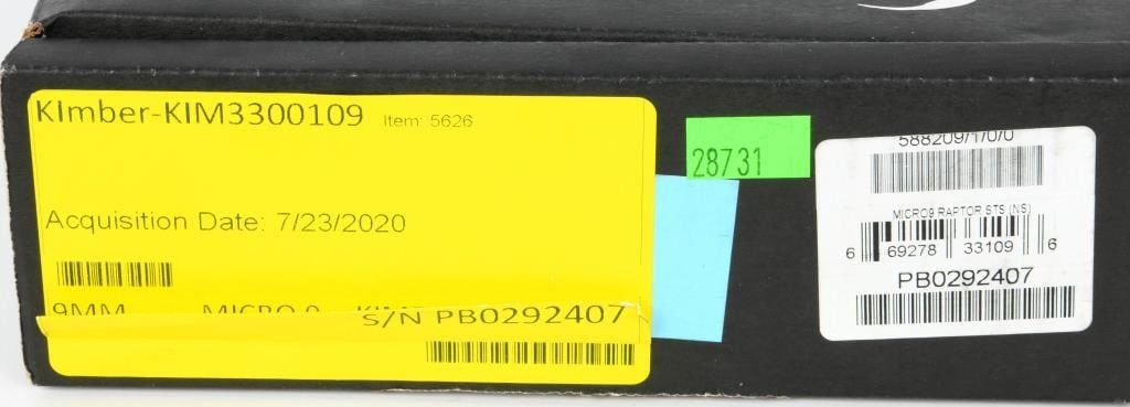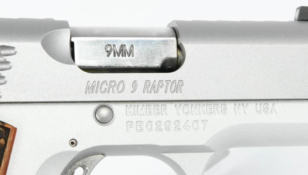 Lot 1344 Kimber Micro 9 Stainless Raptor 9mm