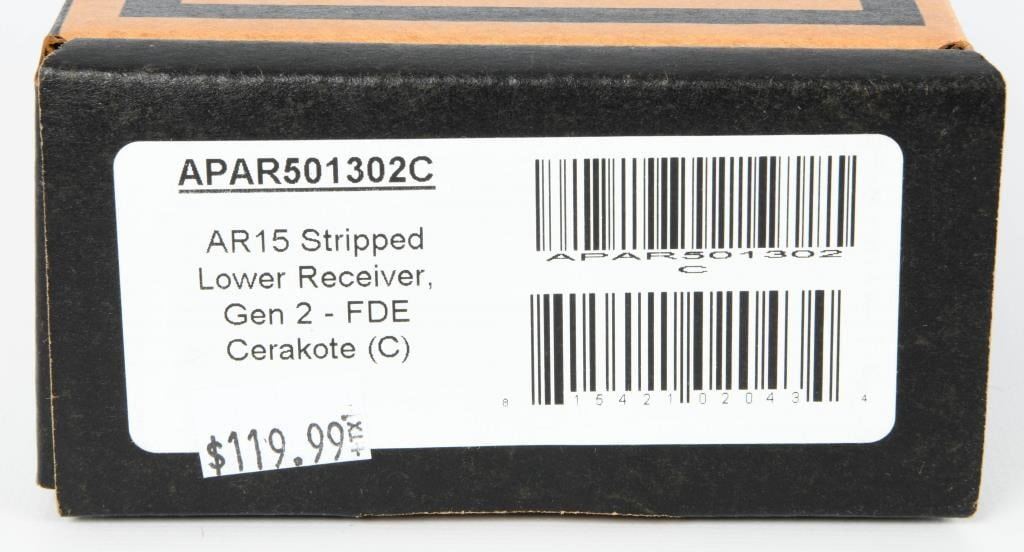 Up Next We Have an Aero Precision AR-15 Stripped Lower Receiver Gen 2 FDE, and Comes in The Factory Box. Get a Precise Fit on Your Next AR Build with Aero Precision The Aero Precision AR-15 Gen 2 Stripped Lower Receiver is the perfect starting point for your next AR build. Machined from 7075-T6 aluminum with a hard-coat anodized finish, the Gen 2 works with standard AR-15 components for easy assembly and fit. Aero Precision Gen 2 enhancements have been integrated into the Gen 2 lower. The rear takedown pin detent hole has been threaded for a 4-40 set screw and an upper tension screw has been placed in the grip tang. The Upper Tension Screw allows you to reduce the play between the upper and lower. The magazine well has an increased flare for smoother insertion of the magazine. For your next precision AR build make sure you use Aero Precision. Aero Precision AR-15 Stripped Lower Receiver Gen 2 Specifications and Features: Manufacturer Item Number: APAR501302C Stripped AR-15 Lower Receiver Multi-Caliber Marked (compatible with 5.56/.223/.300 BLK and more) Machined from 7075-T6 Forged Aluminum Works with Standard AR-15 Components Upper Tension Screw Rear Takedown Pin Detent Hole is Threaded for a 4-40 Set Screw Increased Magazine Well Flare Weight: 8.35 oz Flat Dark Earth Cerakote Finish