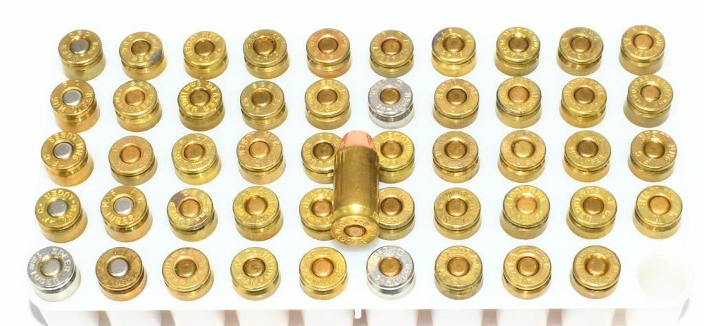 Secure 102 rounds of mixed 9mm Luger ammunition, featuring various headstamps and a combination of Round Nose and Jacketed Hollow Point bullets. This diverse mix of ammunition is suitable for a range of shooting applications, offering versatility in your firearm training and practice sessions. With a mix of round nose and jacketed hollow point designs, you'll have the flexibility to use this ammunition for target practice or self-defense training. The various headstamps add an element of collectability to your ammunition collection. Bid confidently on this opportunity to acquire 102 rounds of mixed 9mm Luger ammunition, providing you with a variety of options for your shooting needs. Note: Please ensure compliance with local and state regulations regarding the purchase and possession of ammunition.