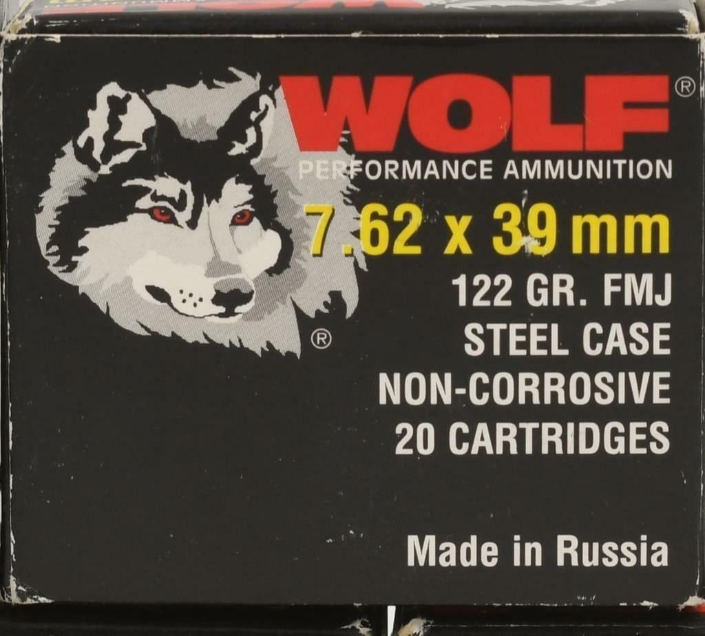 100 Rounds Wolf Performance 7.62x39 Ammunition 122Wolf Performance ammunition is an excellent choice for a high volume shooter, delivering quality and reliability at an affordable price. Wolf Performance features a polymer coating to ensure smooth feeding and extraction. This ammo is new production and is non-corrosive ammunition made in Russia. Wolf Polyformance ammunition features a bi-metal bullet and steel case to provide an inexpensive option for high volume shooters. The Bi-Metal bullet consists of a lead core and a copper plated steel jacket. This affordable ammunition is loaded with high quality Wolf primers for reliable ignition and functioning in adverse conditions. The thin polymer coating helps to ensure smooth feeding and extraction. This ammunition is new production, non-corrosive, in non-reloadable steel cases. Grain Bi-Metal FMJ Steel Case 2362 fps