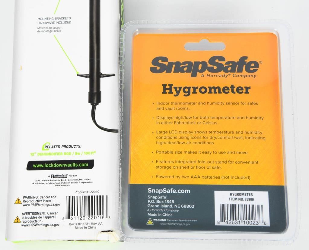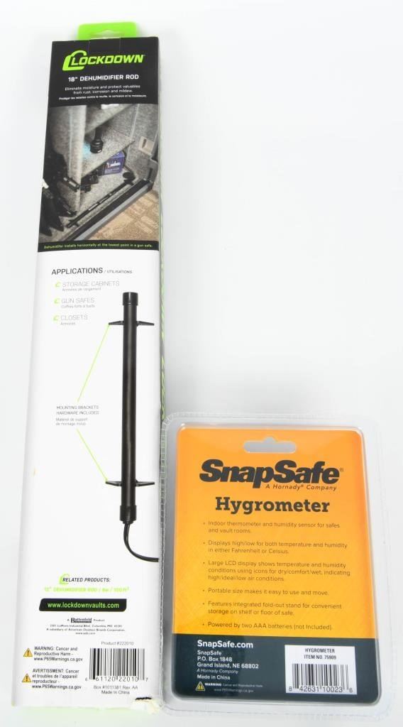 Security Enthusiasts, here's a fantastic opportunity for you! Presenting a new 18" Lockdown Dehumidifier Rod & Hygrometer lot, including 1 new-in-the-box 18" Lockdown Dehumidifier Rod and 1 new-in-the-box SnapSafe Hygrometer. Seize this chance to enhance the protection of your valuables with the precision-crafted Lockdown Dehumidifier Rod and Hygrometer, both still sealed in the box. Bid now and elevate your security setup with the quality and reliability of these top-notch accessories! Happy bidding!
