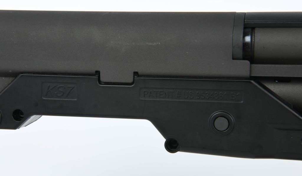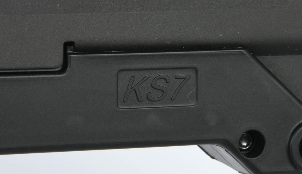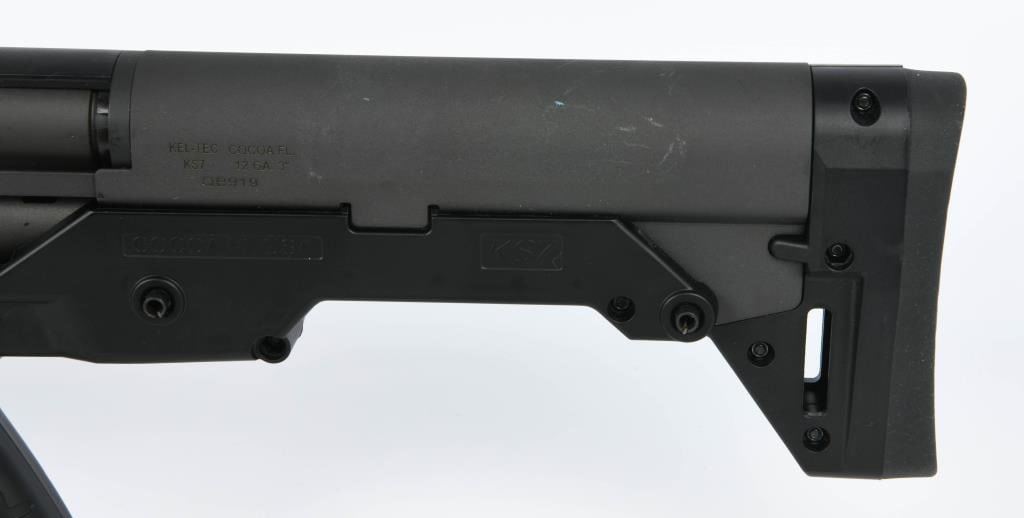Introducing the Kel-Tec KS7 Bullpup Shotgun, a compact powerhouse that redefines the shotgun experience. Chambered in 12 gauge and designed with innovation in mind, the KS7 offers a unique blend of form and function, making it a standout choice for those who appreciate cutting-edge firearms. This bullpup design brings a whole new level of maneuverability to the shotgun world. With its compact frame and bullpup configuration, the Kel-Tec KS7 delivers a nimble and easy-to-handle platform without compromising on barrel length. The result is a shotgun that excels in tight spaces while maintaining the full ballistic potential of a 12-gauge chamber. The KS7 is not just about compactness; it's also about versatility. This shotgun accepts 3" shells, giving you the flexibility to choose from a variety of loads for different applications. Whether you're considering home defense, range shooting, or other tactical scenarios, the KS7 has the adaptability to meet your needs. Adding to its unique profile is the integrated carry handle, providing a convenient and ergonomic way to transport and maneuver the shotgun. The handle enhances the overall aesthetics of the firearm while serving a practical purpose in terms of portability. In the world of bullpup shotguns, the Kel-Tec KS7 stands out as a prime example of forward-thinking design. It combines modern features with the reliability expected from Kel-Tec firearms, creating a shotgun that's as functional as it is distinctive. Experience the future of shotguns with the Kel-Tec KS7 Bullpup Shotgun. Whether you're a seasoned firearm enthusiast or someone looking to expand their collection, this innovative shotgun is sure to capture your attention. Place your bid now and secure the chance to own this cutting-edge firearm. Happy bidding!