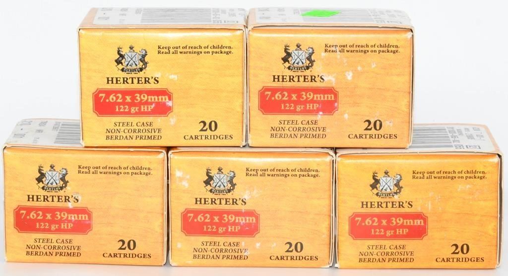Secure 100 rounds of Herter's 7.62x39mm ammunition, featuring reliable 122-grain Hollow Point projectiles, steel cases, and non-corrosive primers. This ammunition is designed for performance and affordability, making it a great choice for various shooting applications. The 122-grain Hollow Point bullets offer controlled expansion upon impact, making them suitable for hunting and other scenarios where terminal performance is crucial. The steel cases and non-corrosive primers contribute to cost-effective shooting. Bid confidently on this opportunity to acquire 100 rounds of Herter's 7.62x39mm ammunition, enhancing your shooting experience with reliable, hollow point rounds. Note: Please ensure compliance with local and state regulations regarding the purchase and possession of ammunition.